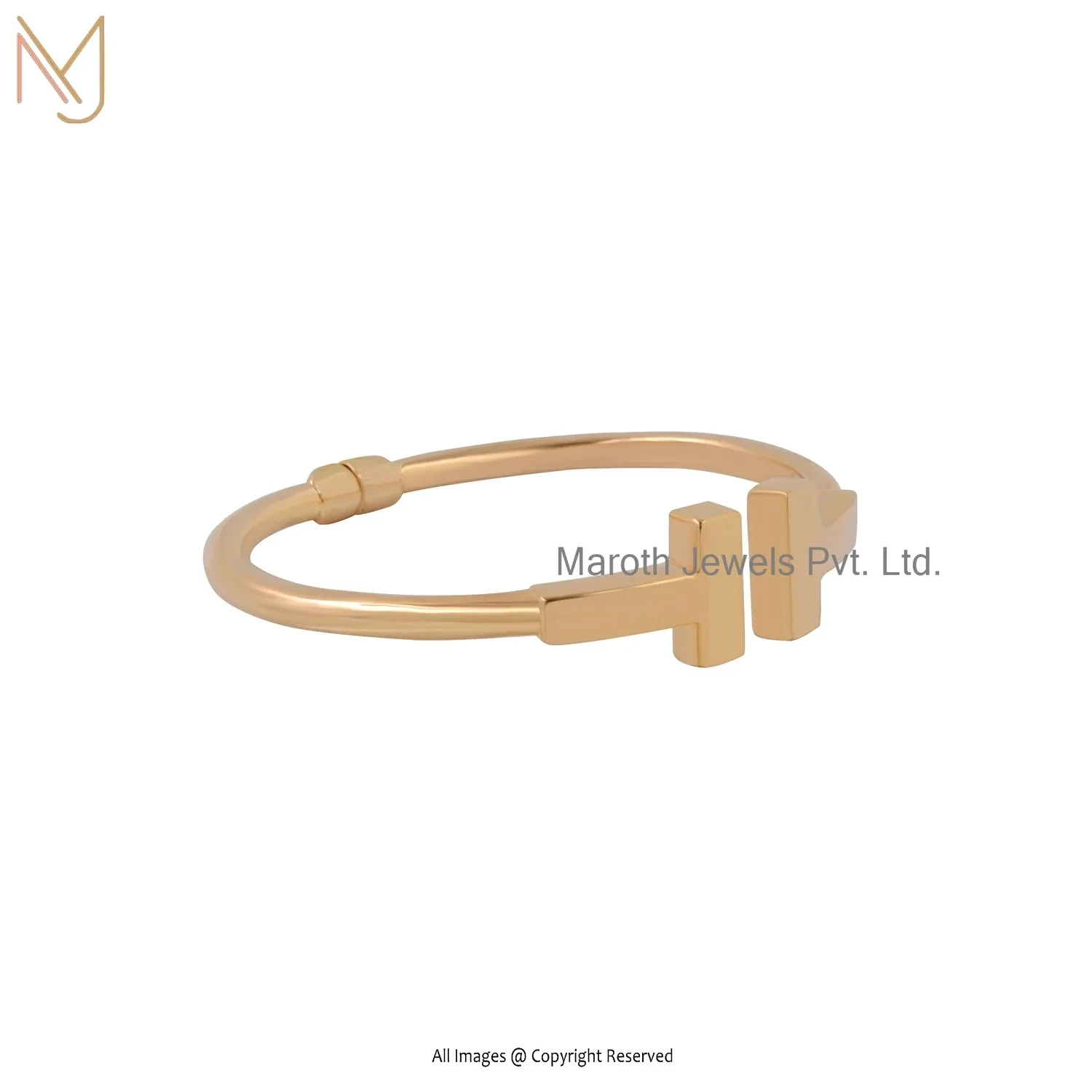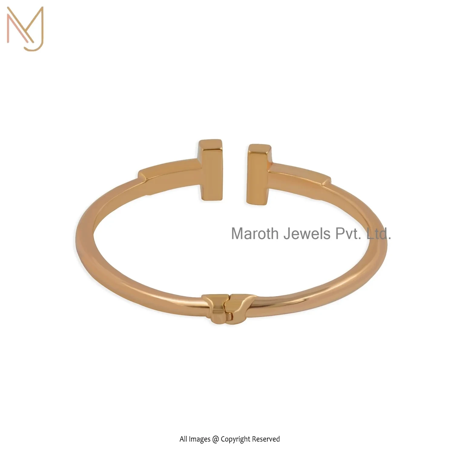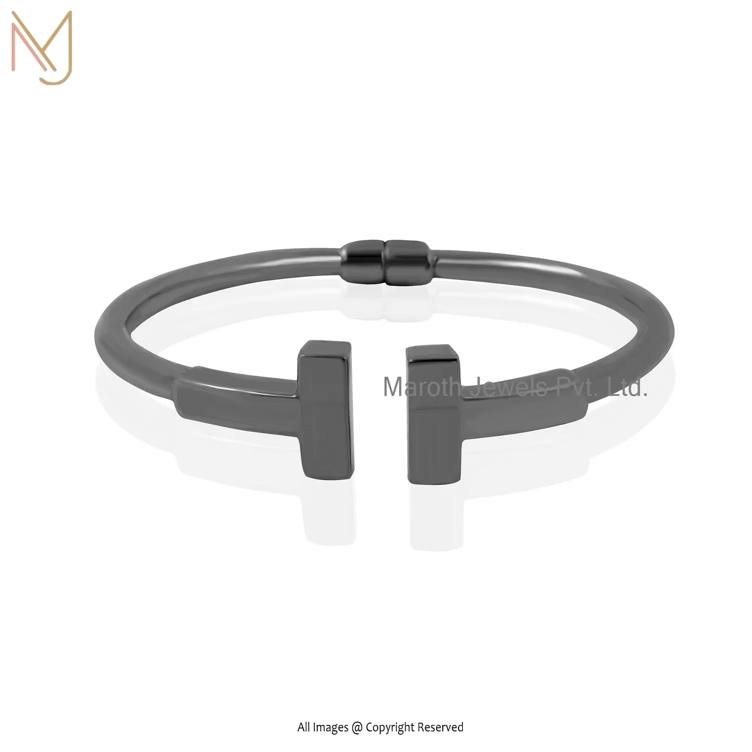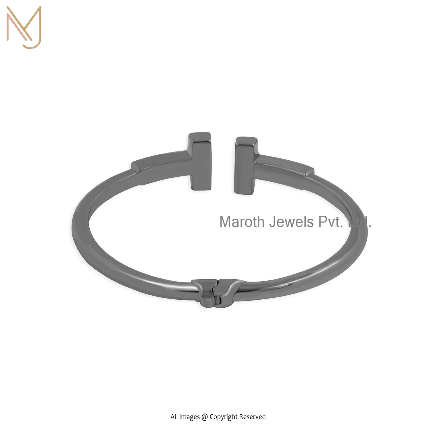 925 Silver Natural Silver Plated Cuff T Bangle Custom Jewelry