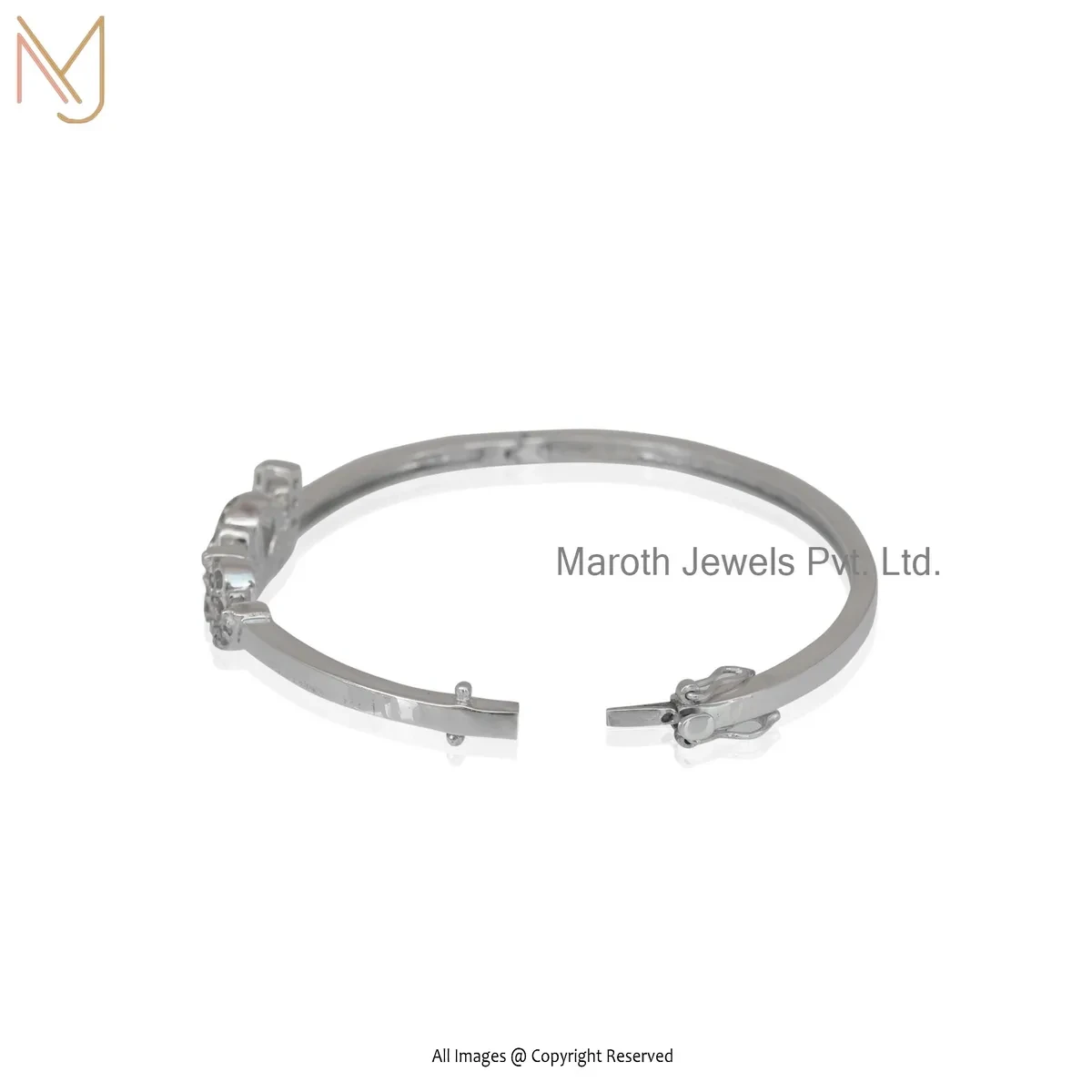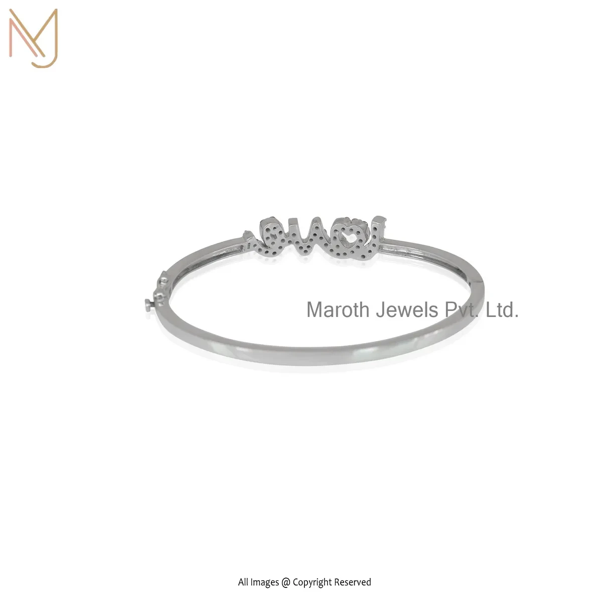 925 Silver Natural Silver Plated Diamond Initial Love Bangle Custom Jewelry