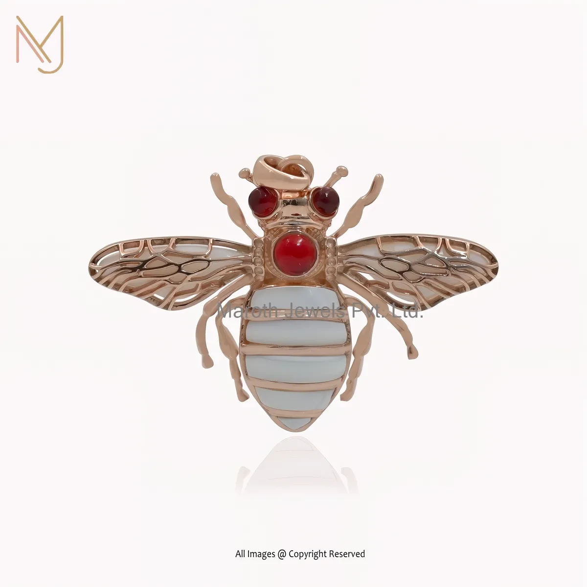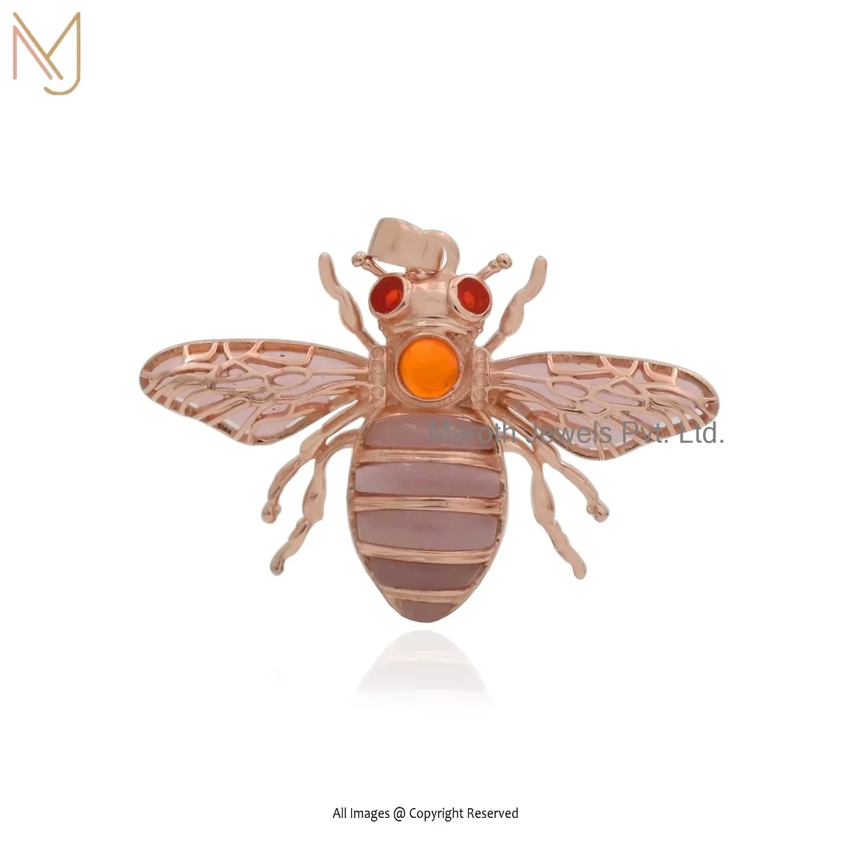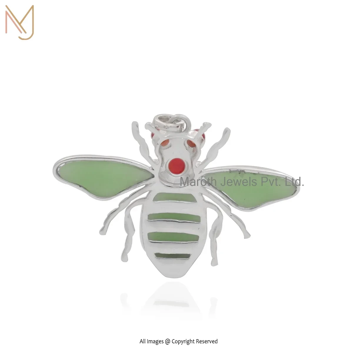 925 Silver Natural Silver Plated Green Opal & Garnet Bee Charm Pendant Jewelry Supplier