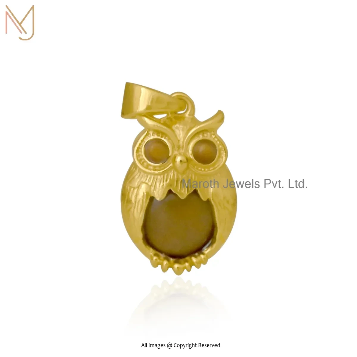 925 Silver Natural Silver Plated Malachite Owl Pendant Jewelry Supplier