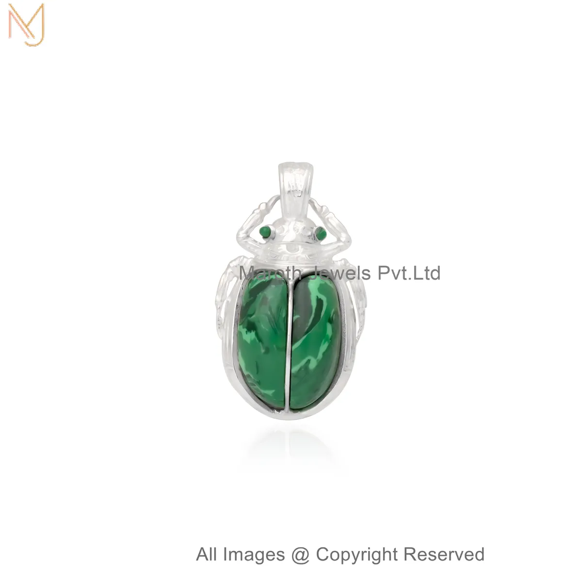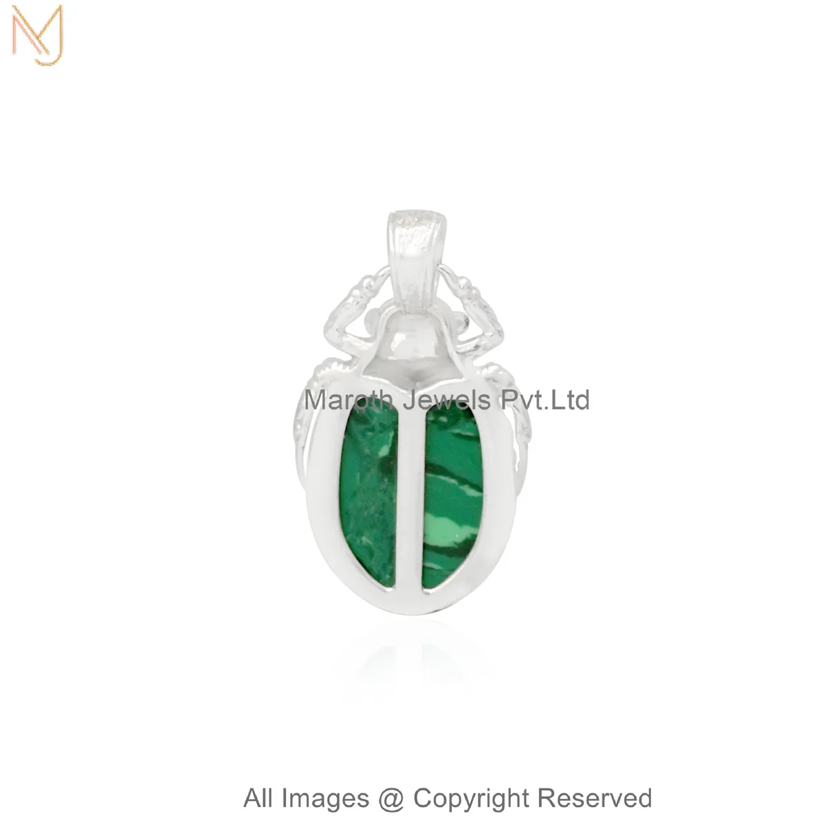 925 Silver Natural Silver Plated Malachite Scarab Beetle Pendant Manufacturer