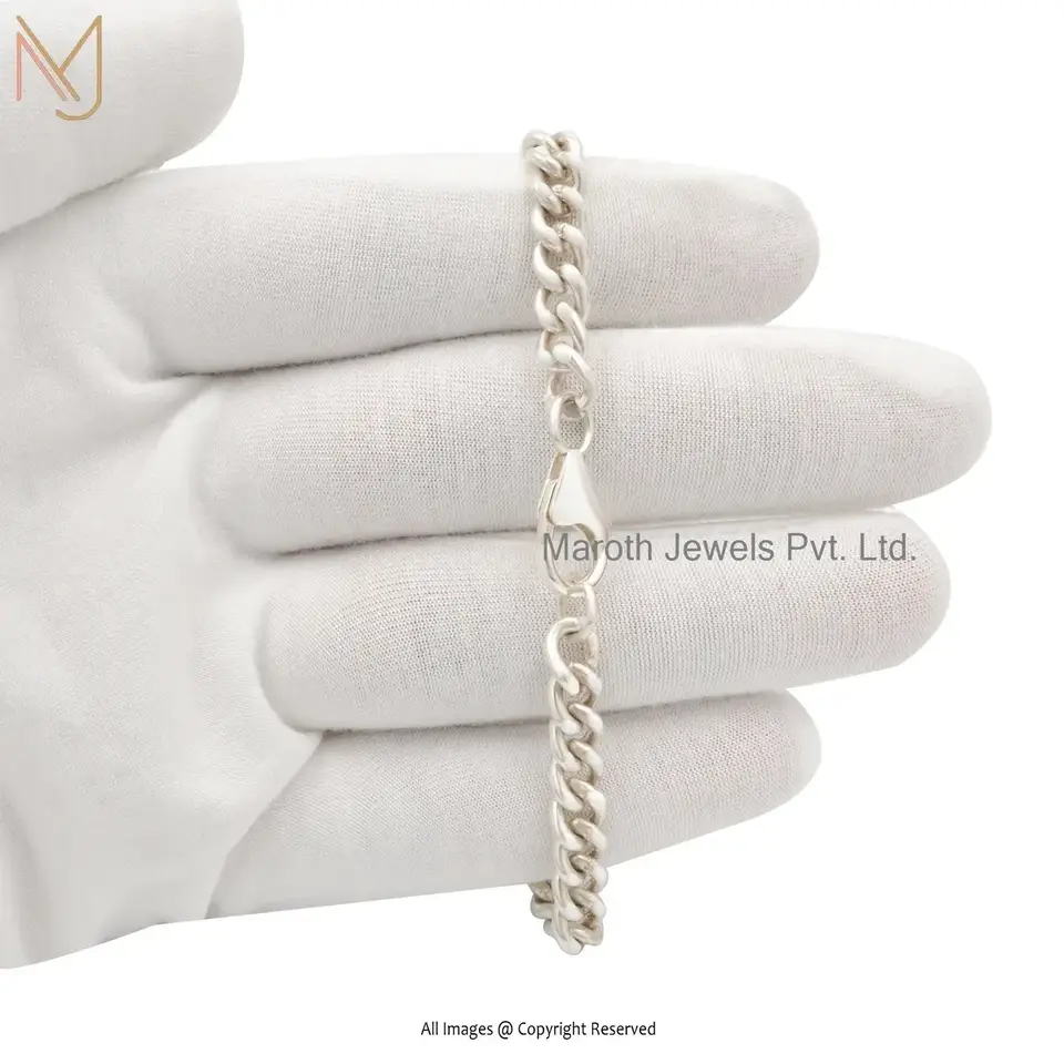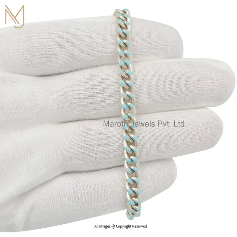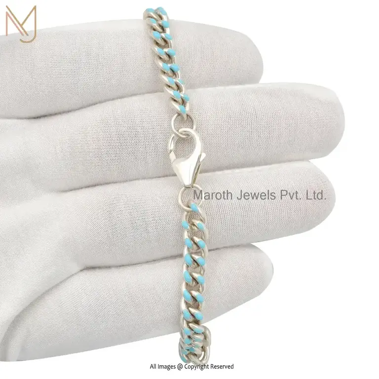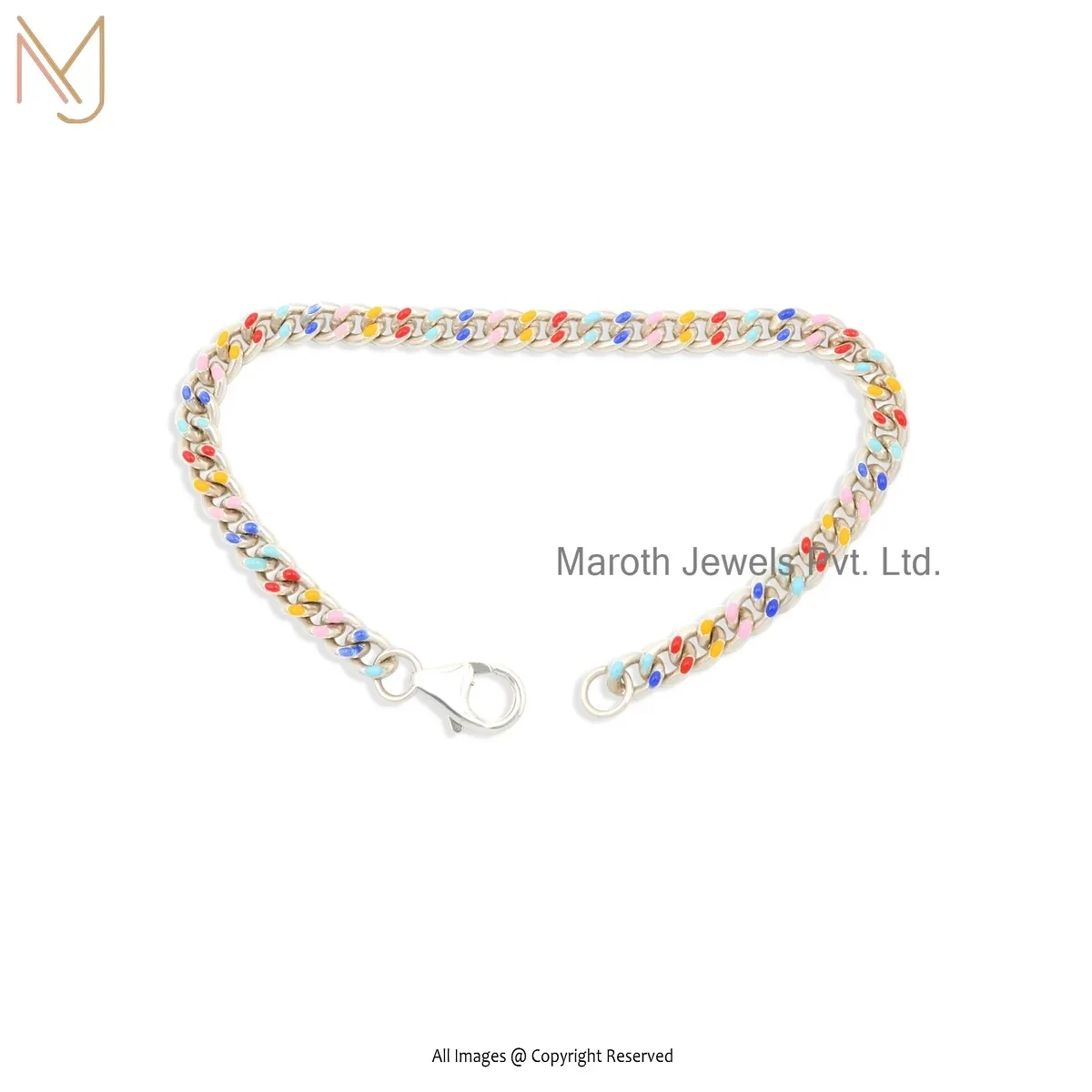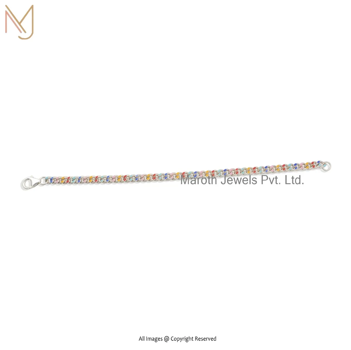 925 Silver Natural Silver Plated Multi Enamel Curb Chain With Lobster Lock Bracelet USA