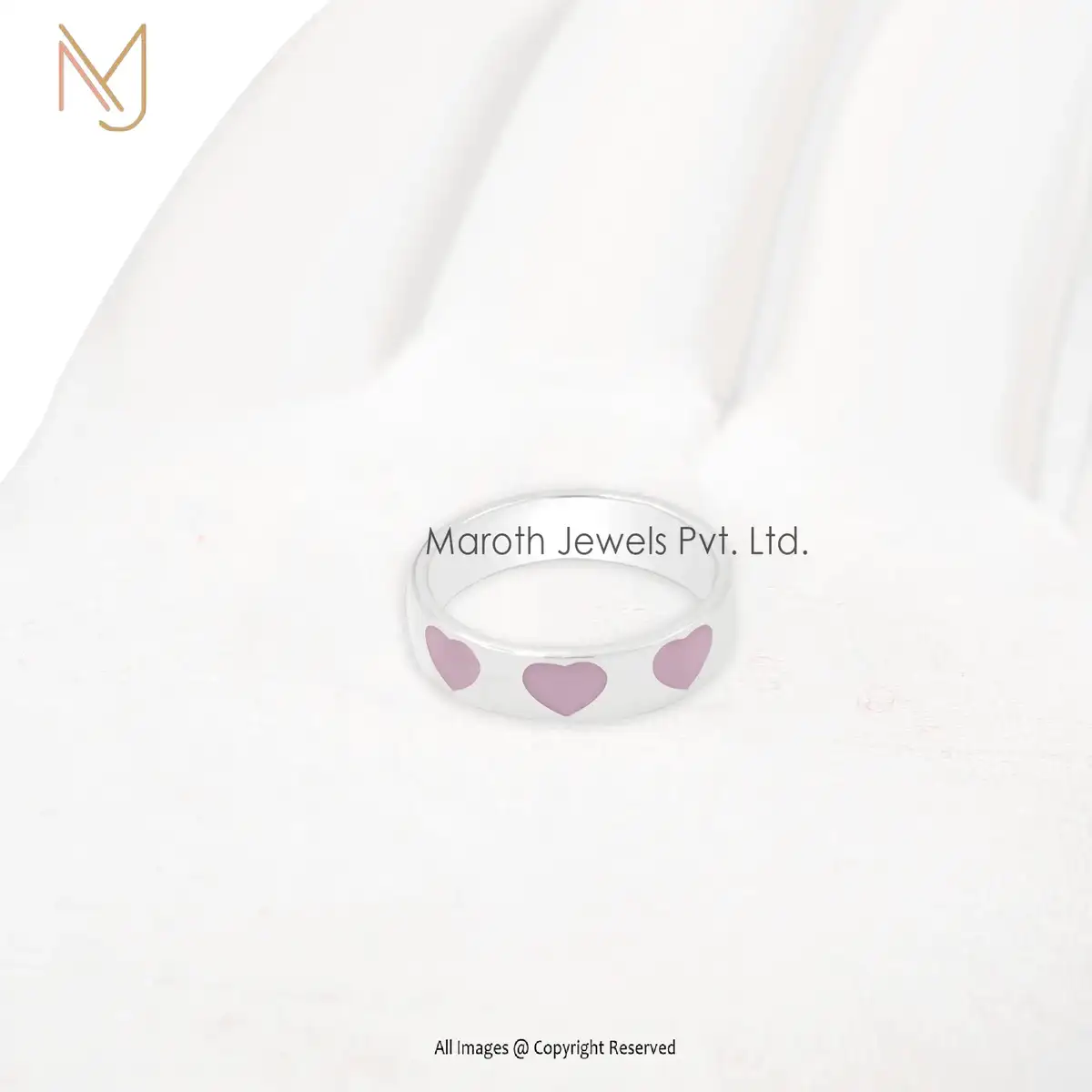 925 Silver Natural Silver Plated Red Enamel Heart Band Ring Manufacturer