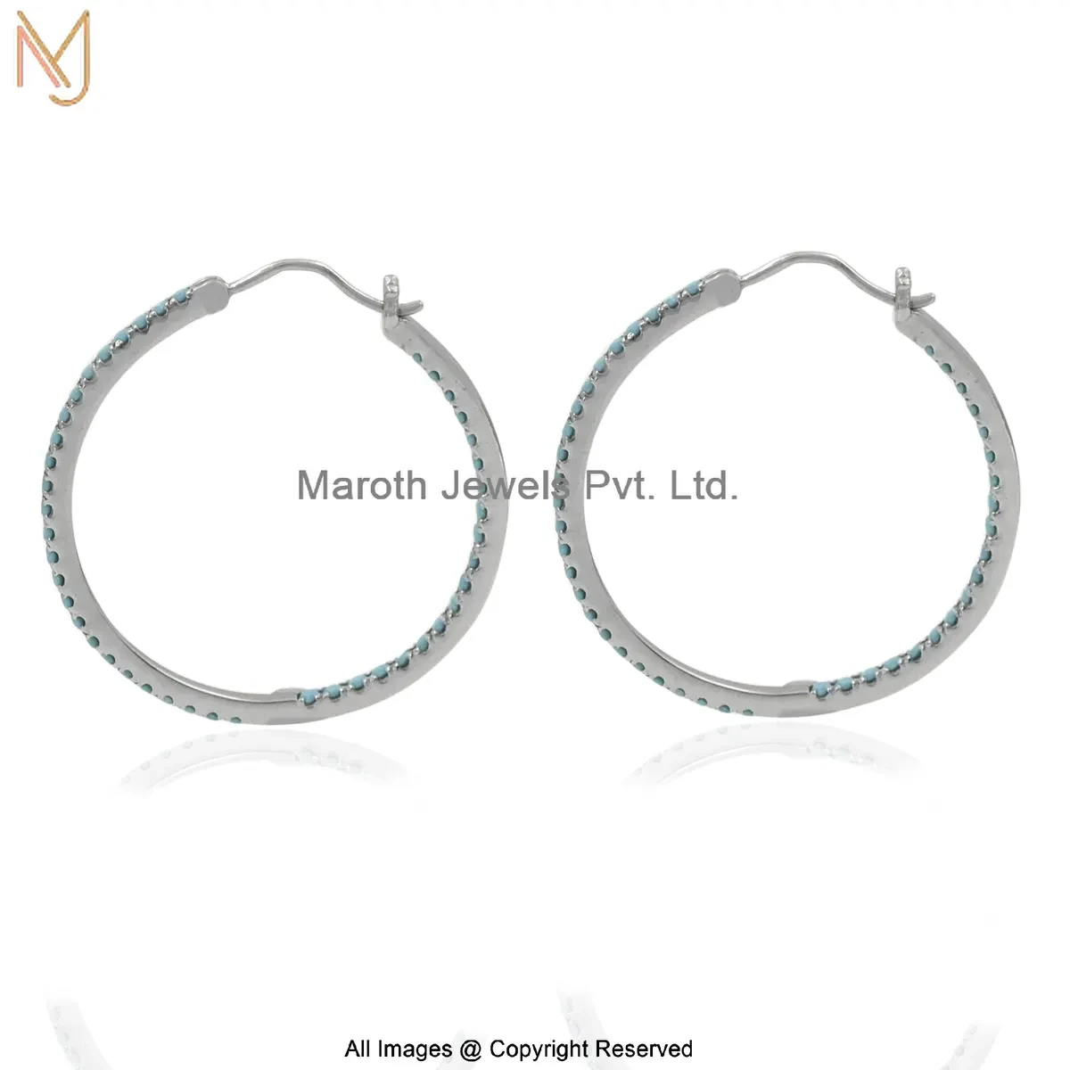 925 Silver Natural Silver Plated Turquoise Hoop Earring Manufacturer