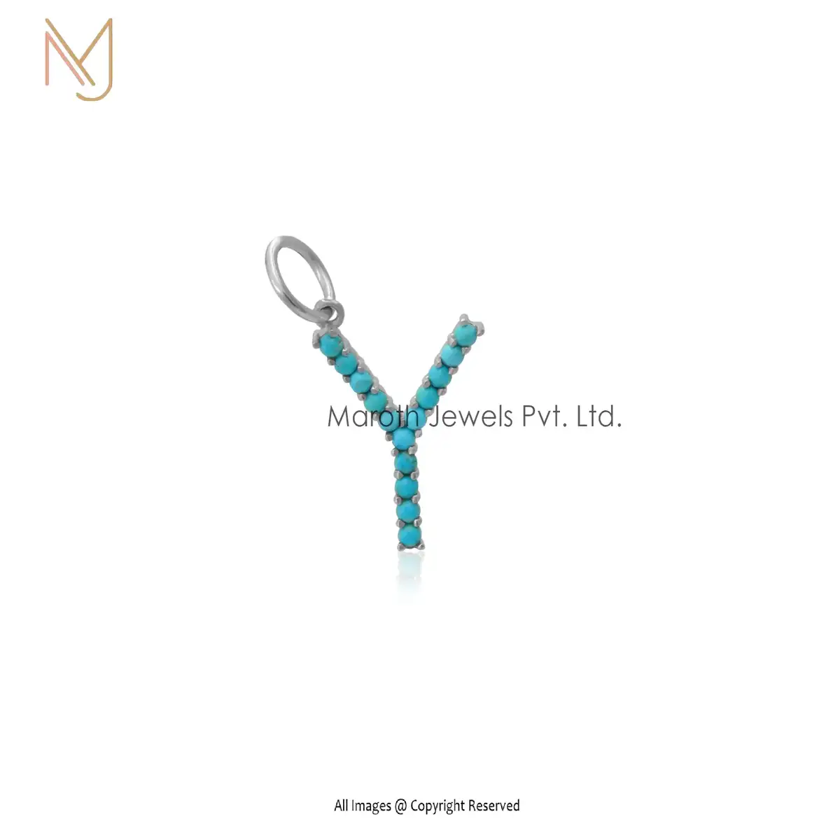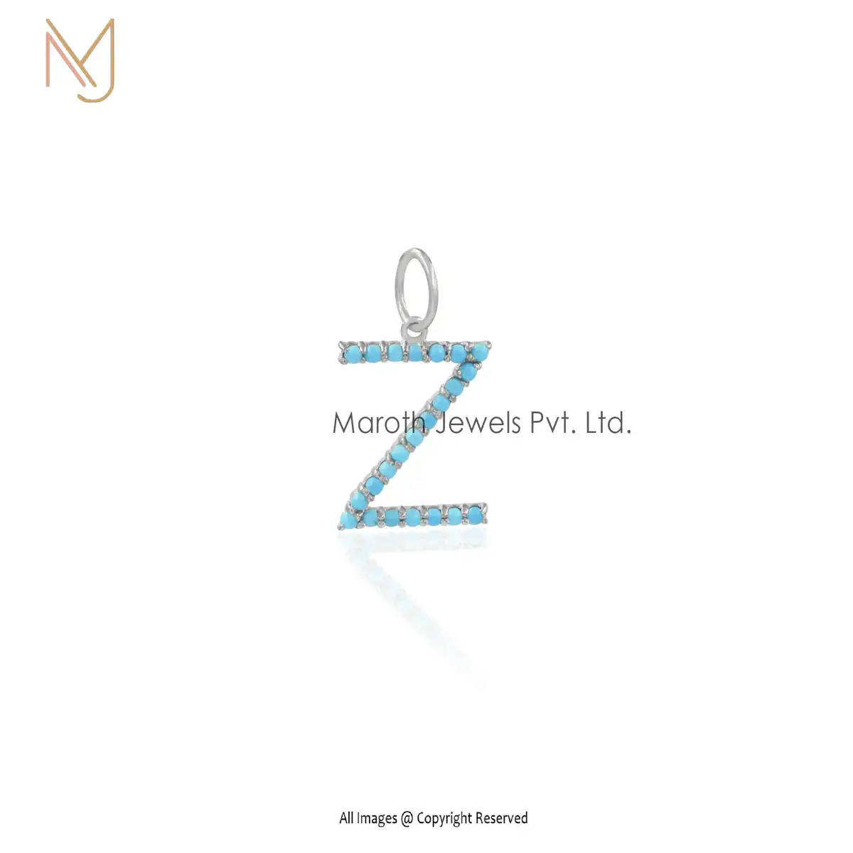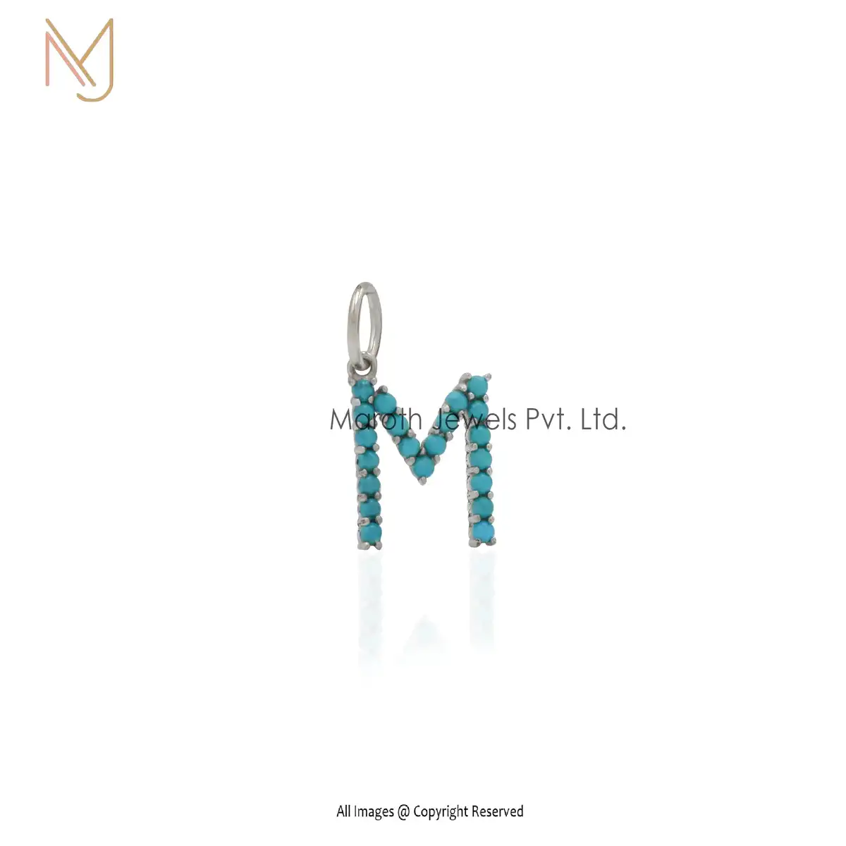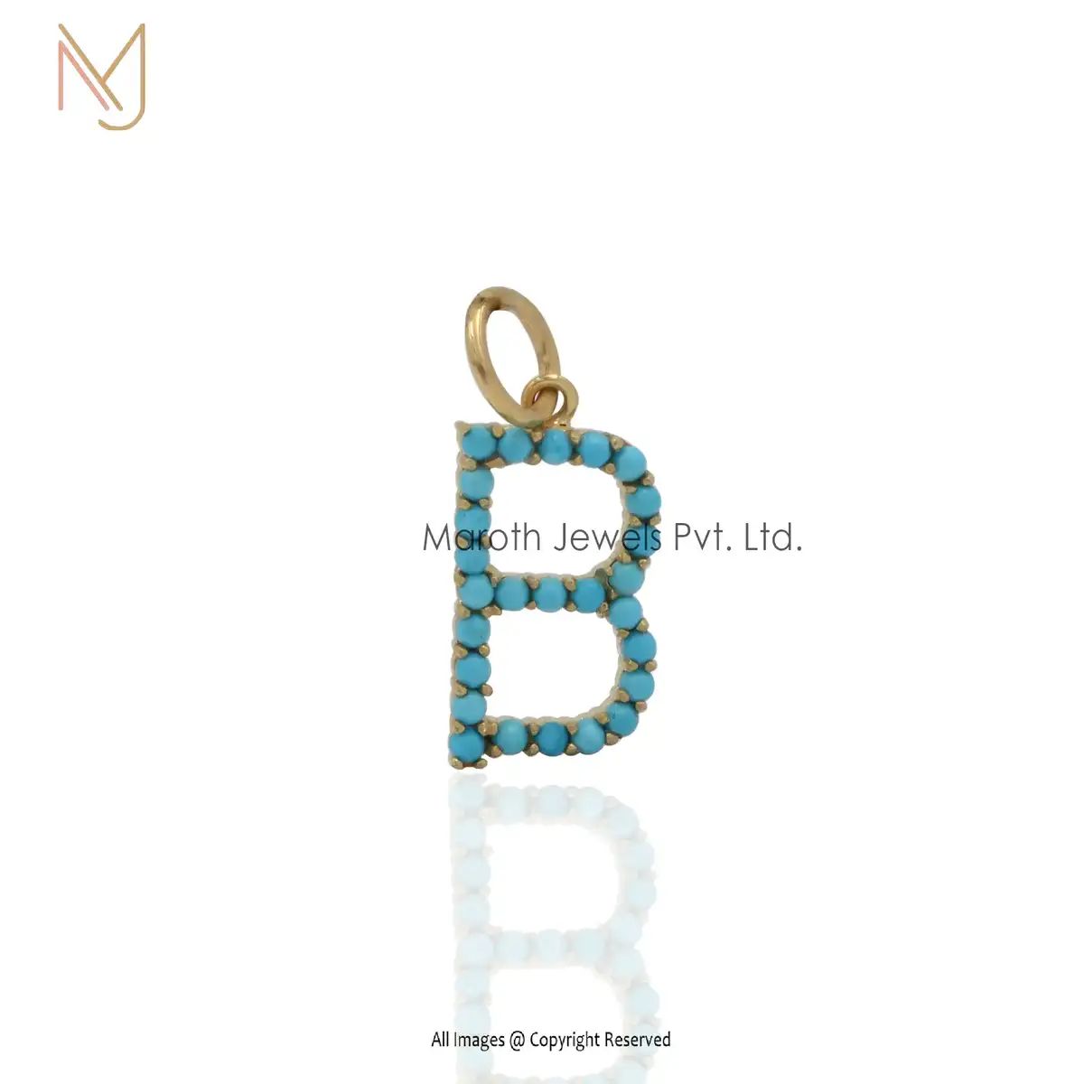 925 Silver Natural Silver Turquoise Gemstone B Letter Charms Manufacturer