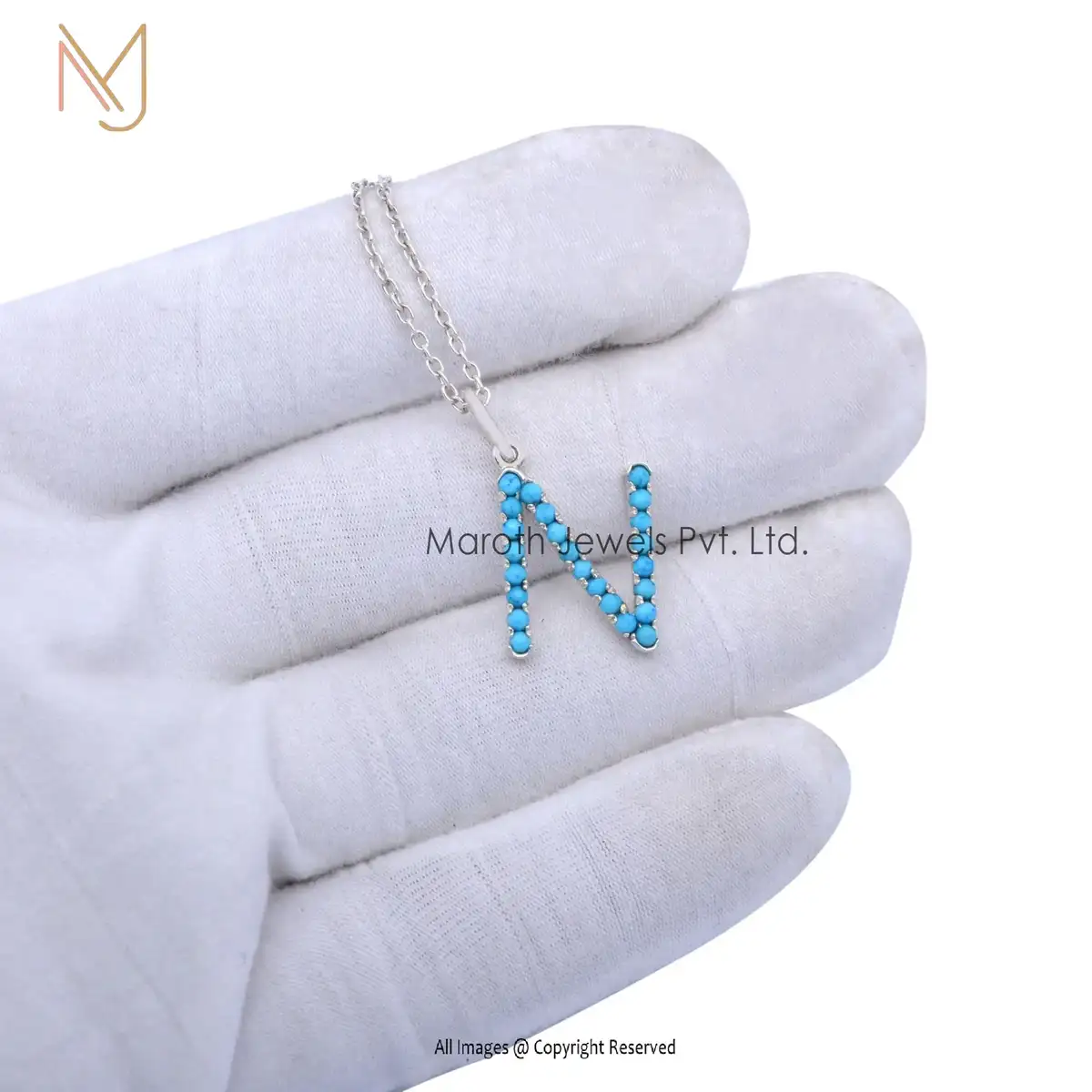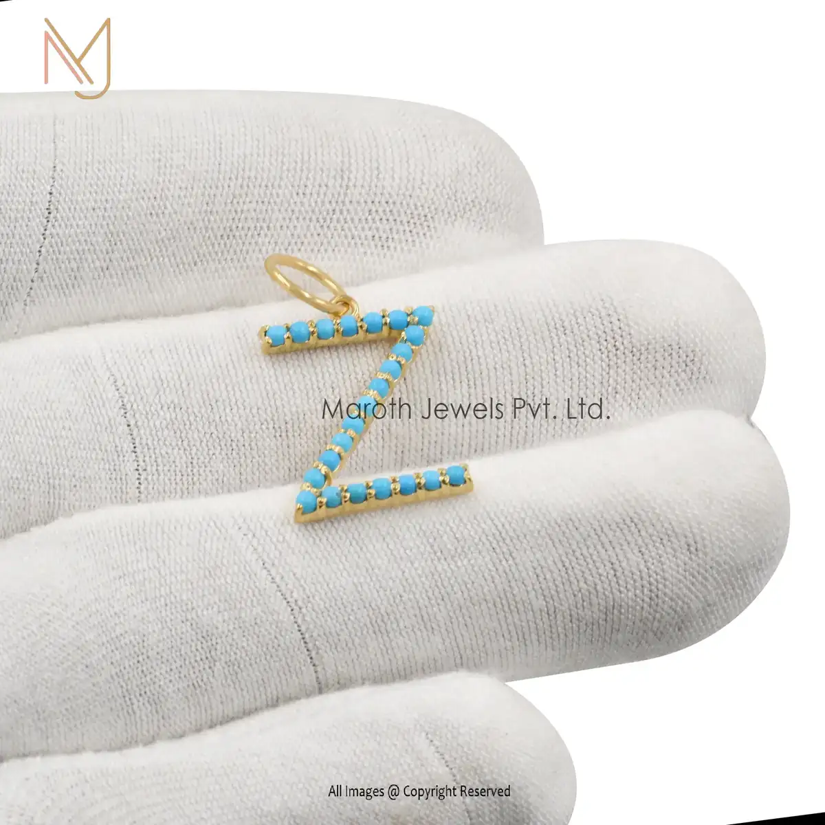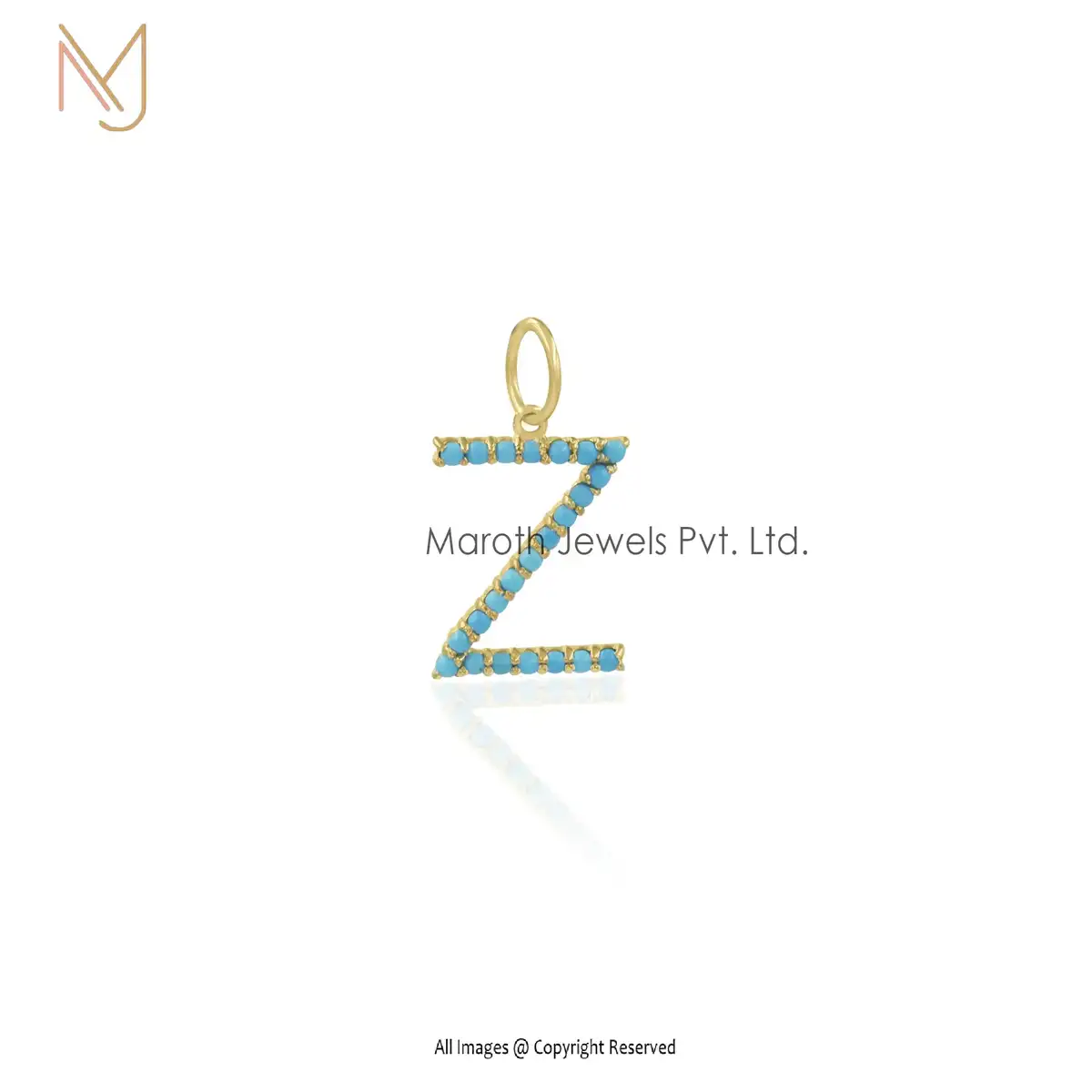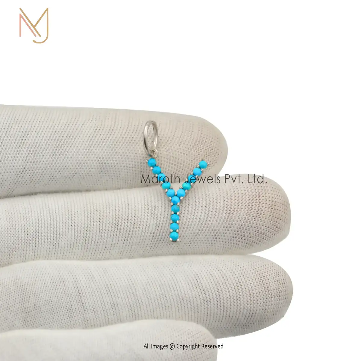 925 Silver Natural Silver Turquoise Gemstone B Letter Charms Manufacturer