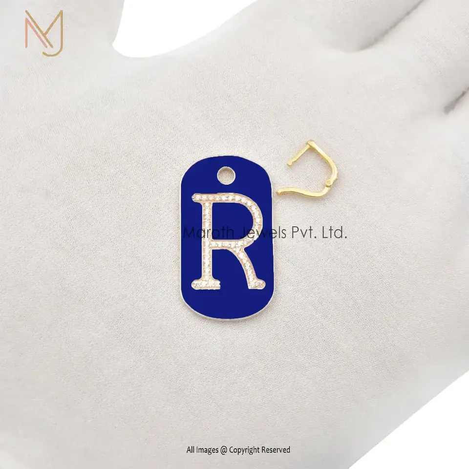 925 Silver Natural Silver White CZ And Blue Enamel Monogram Pendant USA