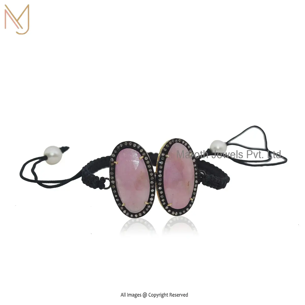 925 Silver Oxidized Yellow Gold Plated Pave Diamond Pink Quartz Bracelet USA