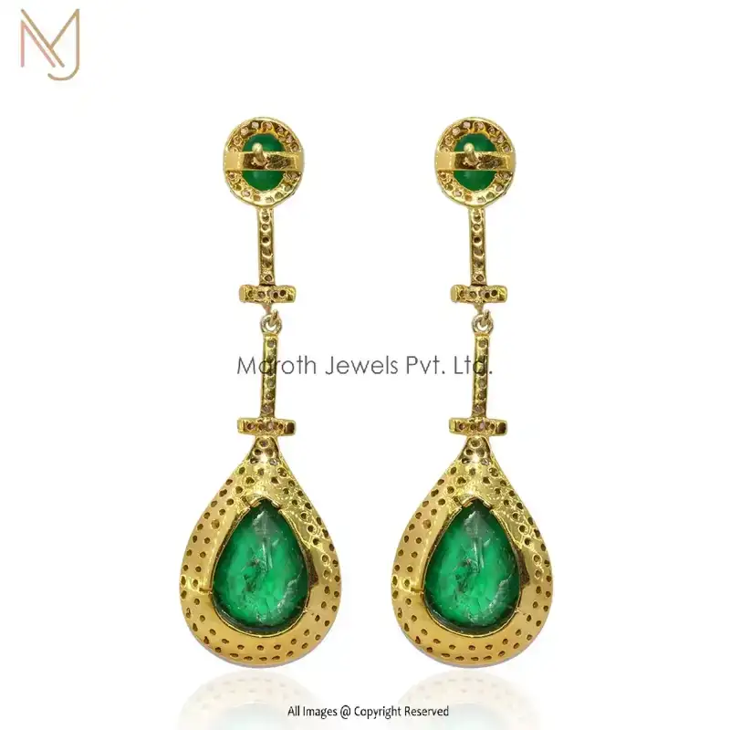 925 Silver Pave Diamond Emerald Gemstone Earrings menufacturer