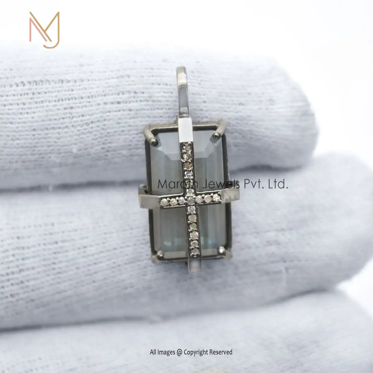 925 Silver Pave Diamond Pendant Labradorite Gemstone Handmade Jewelry USA