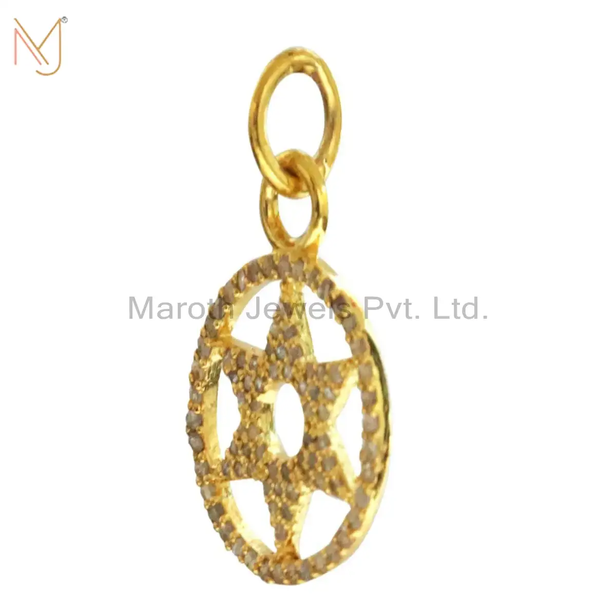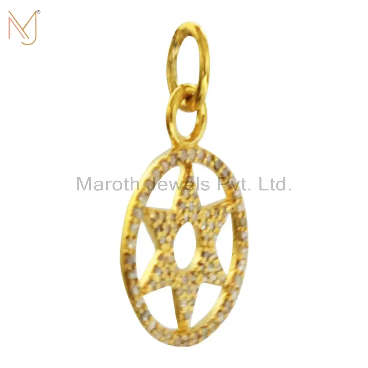 925 Silver Pave Diamond Star Of David Circle Pendant Jewelry Supplier