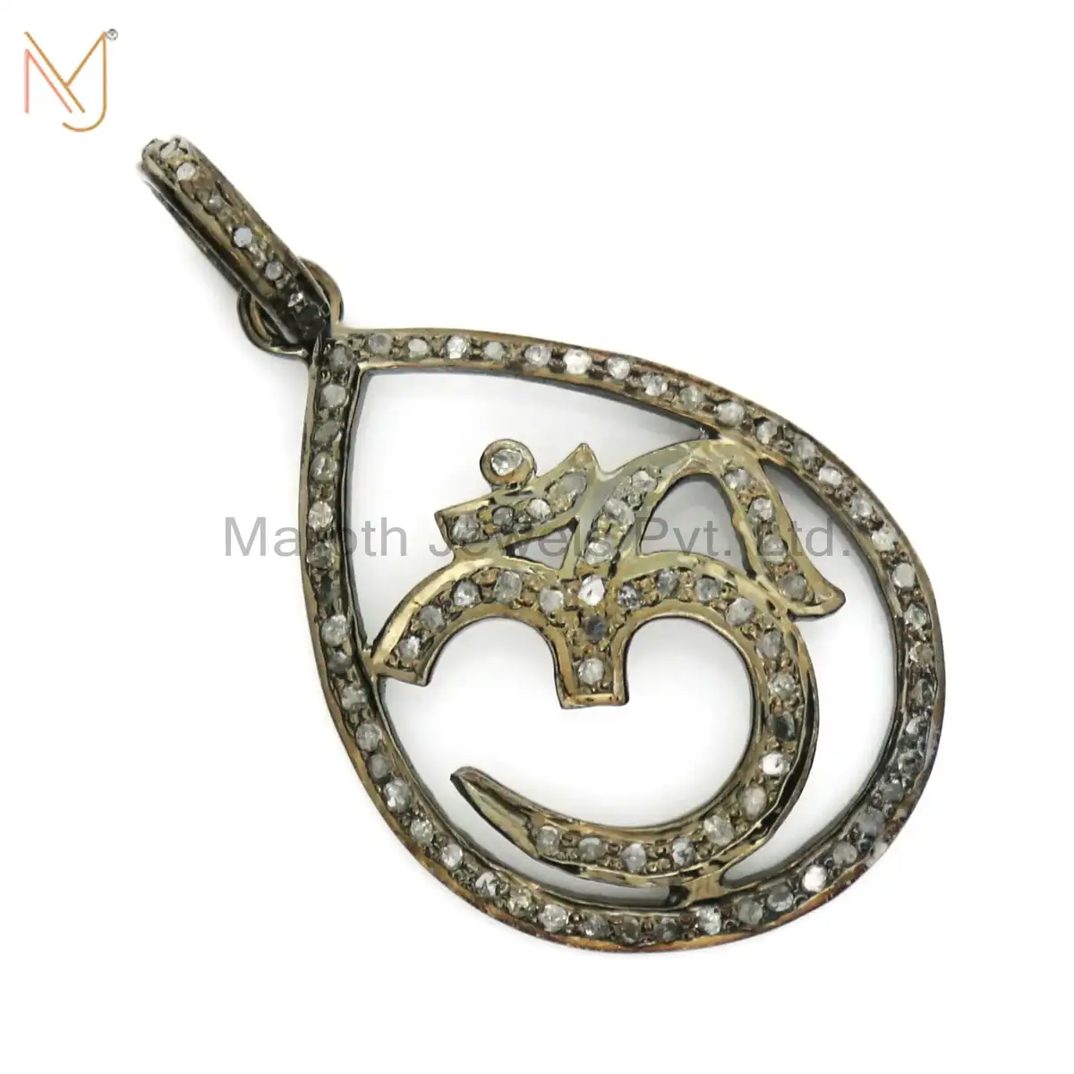 925 Silver RH Pave Diamond Om Religious Drop Pendant Jewelry Manufacturer
