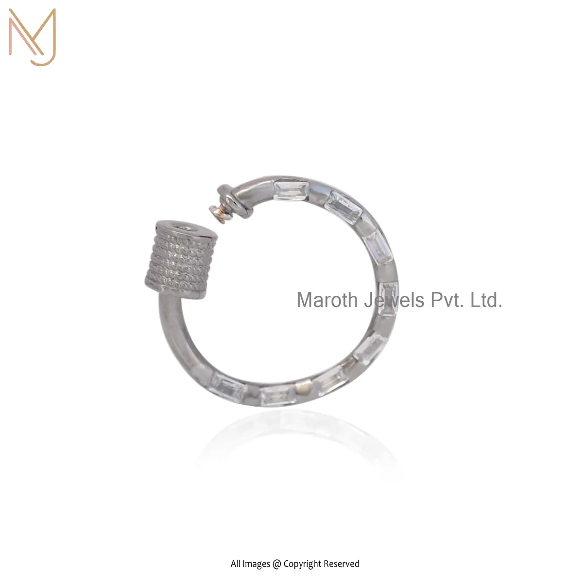 925 Silver Rhdium Plated White Baguette Round Carabiner Lock Custom Jewelry