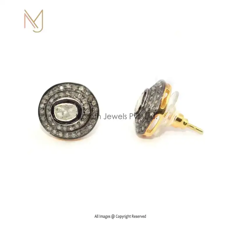 925 Silver Yellow Gold Rhodium Plated Pave Diamond & Rose Cut Diamond Designer Studs Earrings Jewelry Manufacturer
