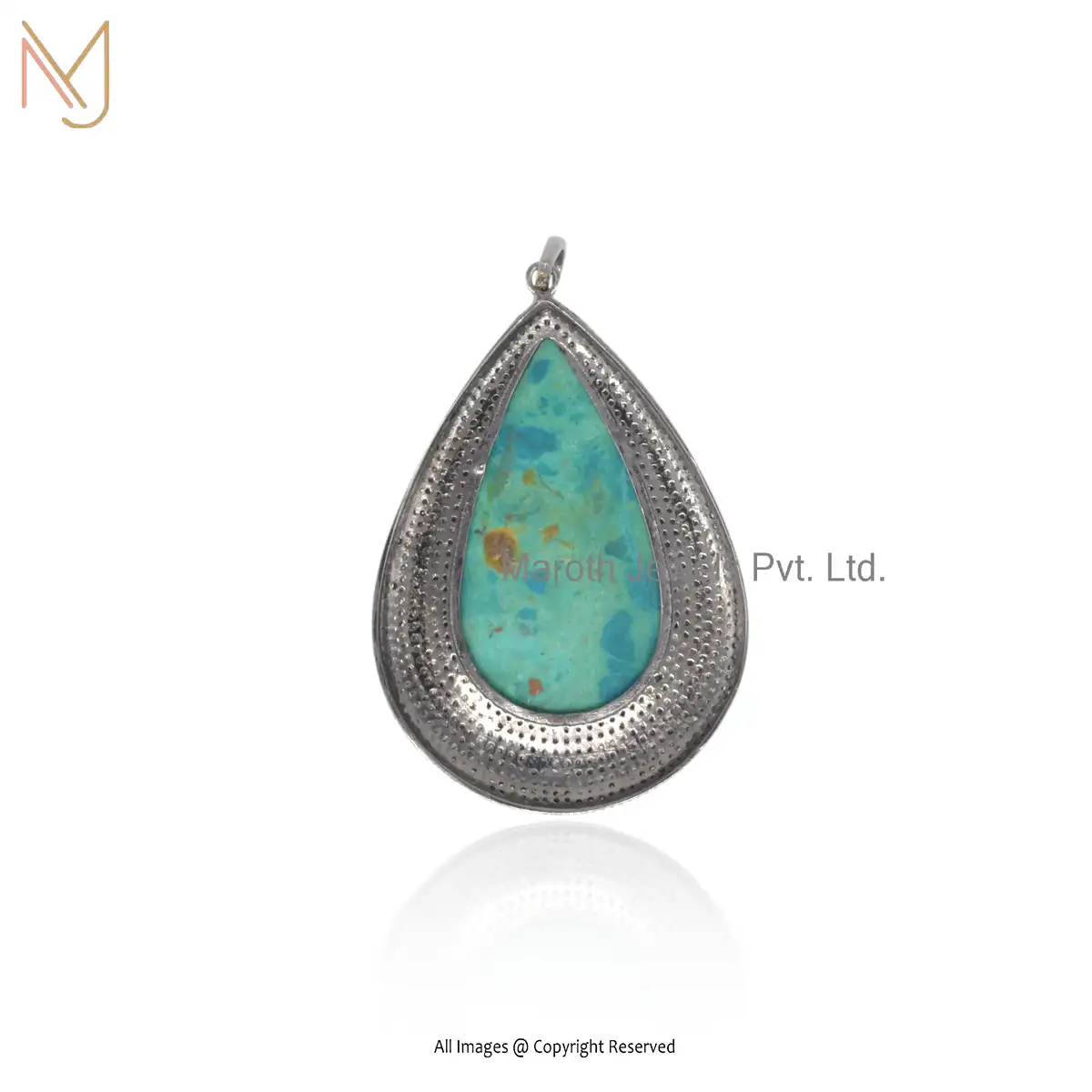 925 Silver Rhodium Pave Diamond And Turquoise Gemstone Designer Pendant Jewelry USA