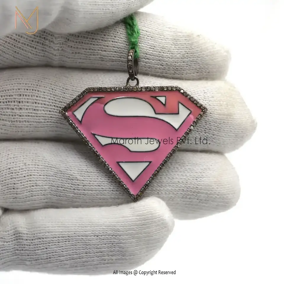 925 Silver Rhodium Pave Diamond Blue & White Enamel Super Men Sing Pendant Manufacturer
