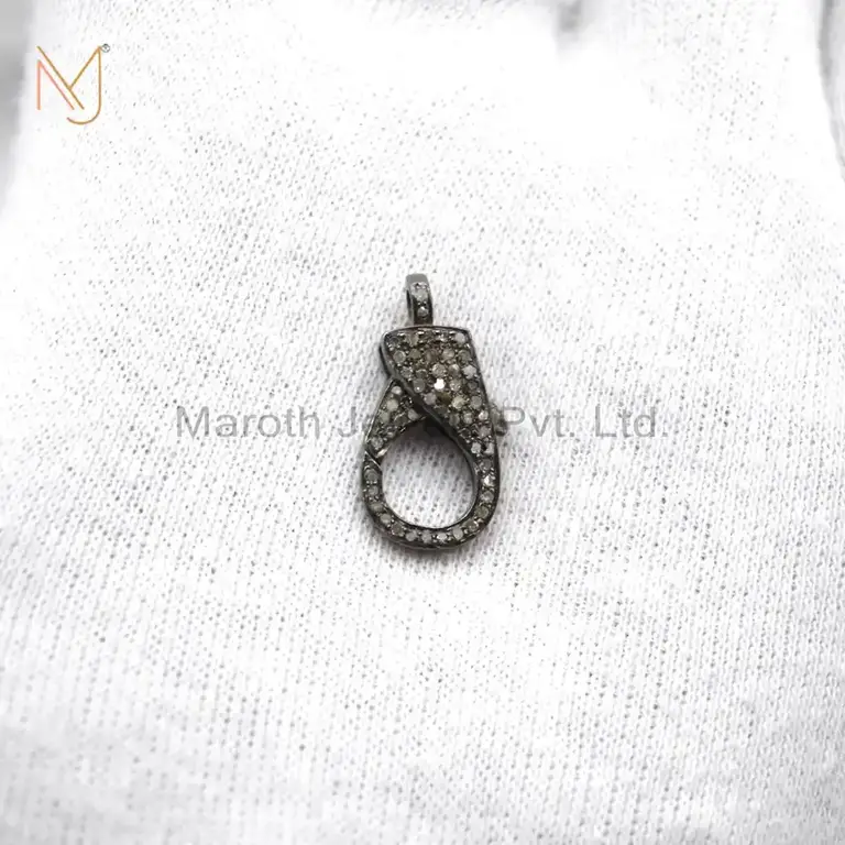 925 Silver Rhodium Pave Diamond Both Side Diamonds Lobster Clasp Finding Custom Jewelry
