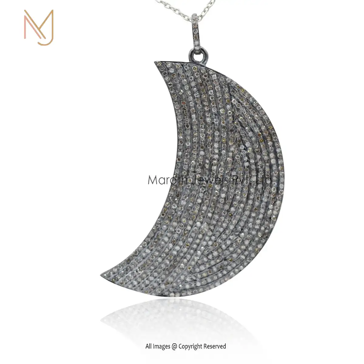 925 Silver Rhodium Pave Diamond Religious Half Moon Designer Pendant Jewelry Supplier