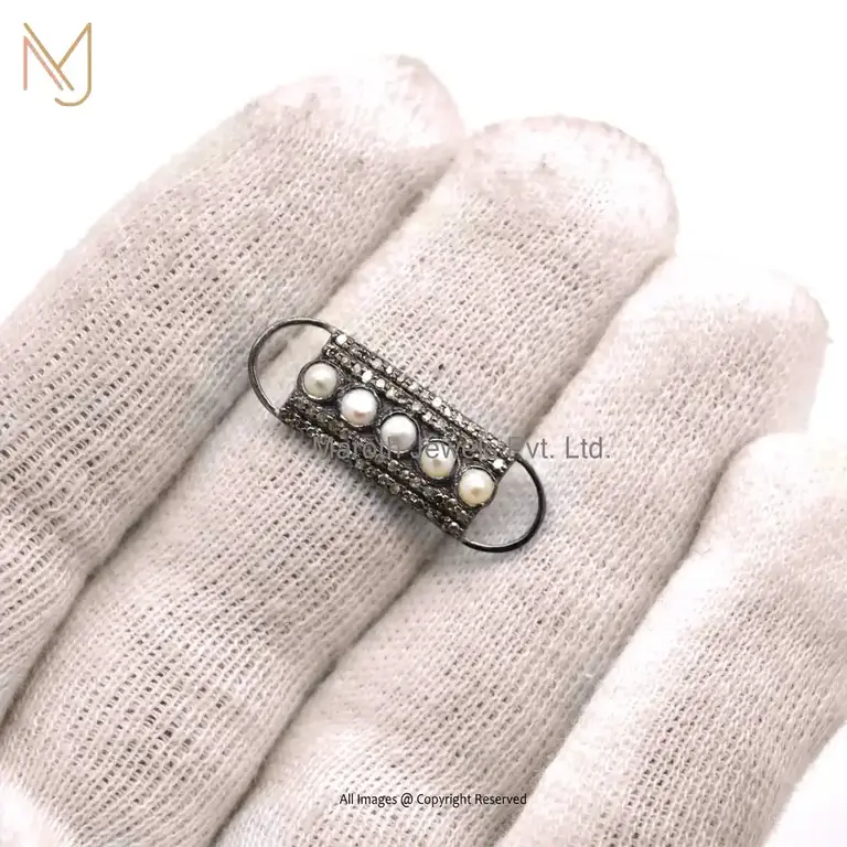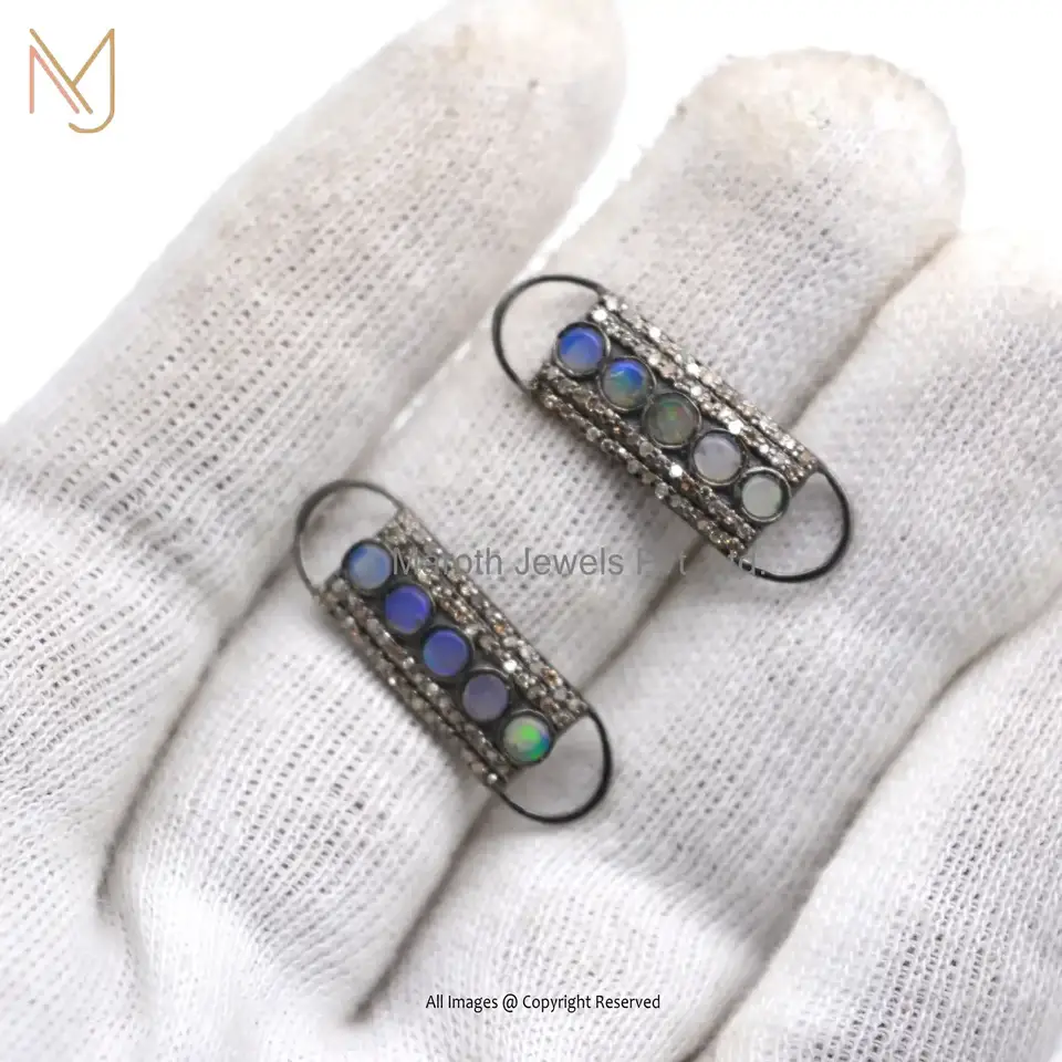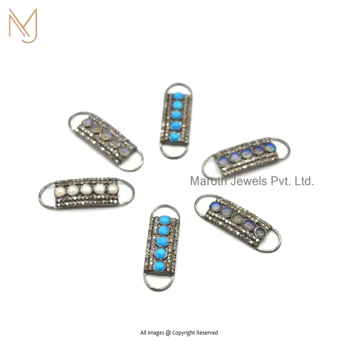 925 Silver Rhodium Pave Diamond & Turquoise Gemstone Bracelet Connector Finding Jewelry USA