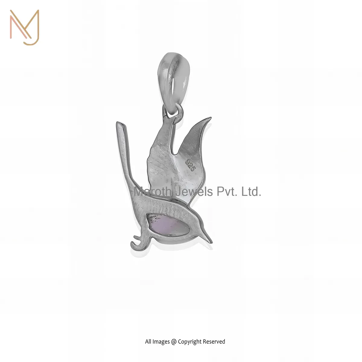 925 Silver Rhodium Plated Amethyst Gemstone Bird Pendant Custom Jewelry