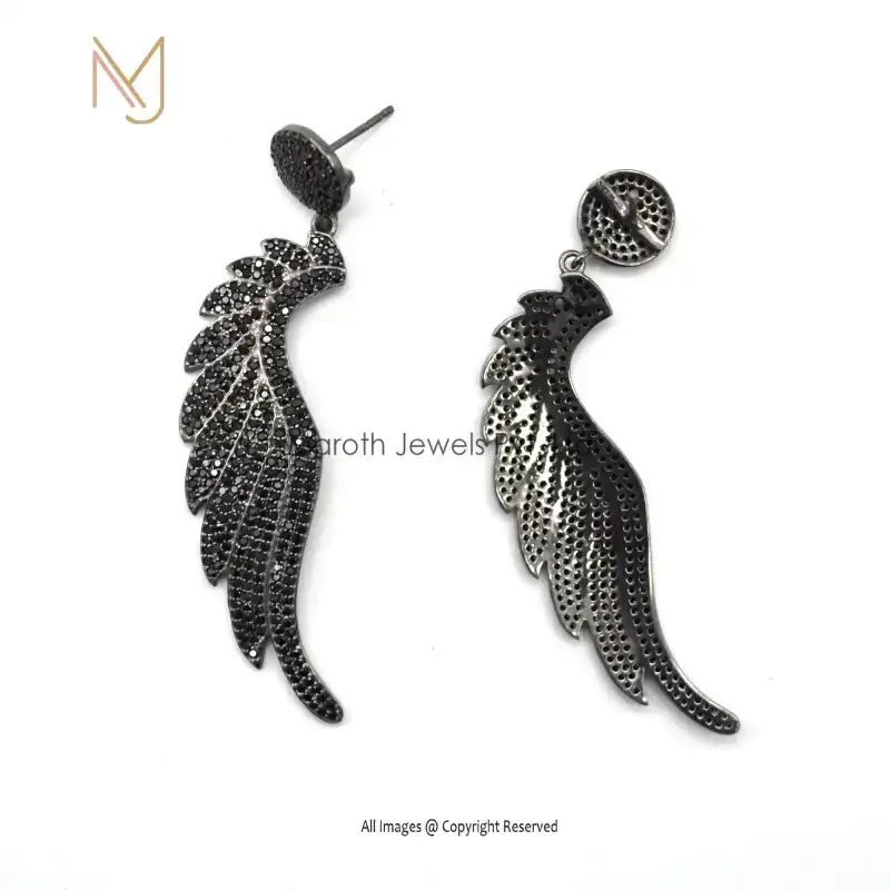 925 Silver Rhodium Plated Black Diamond Drop Dangle Earrrings Manufacturer