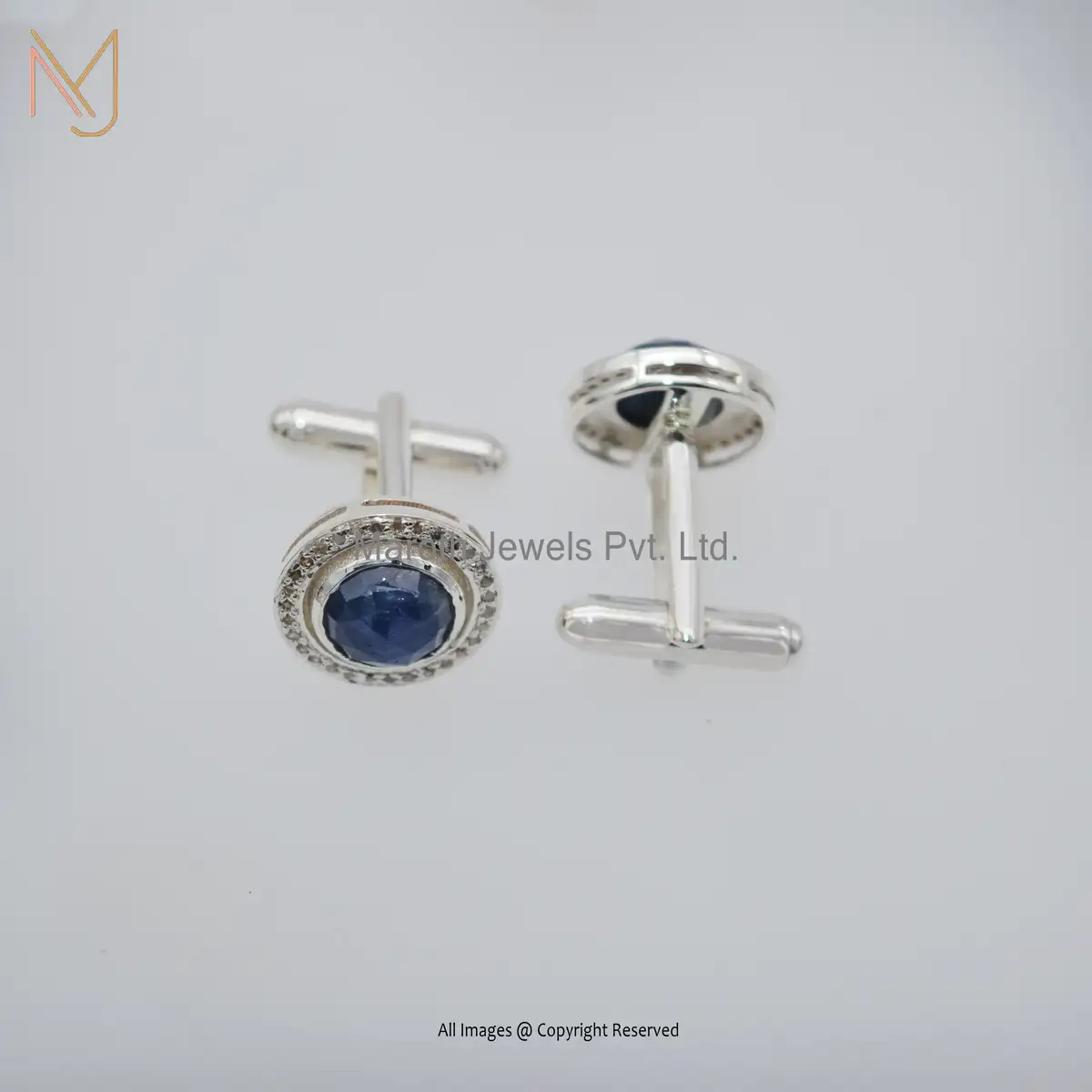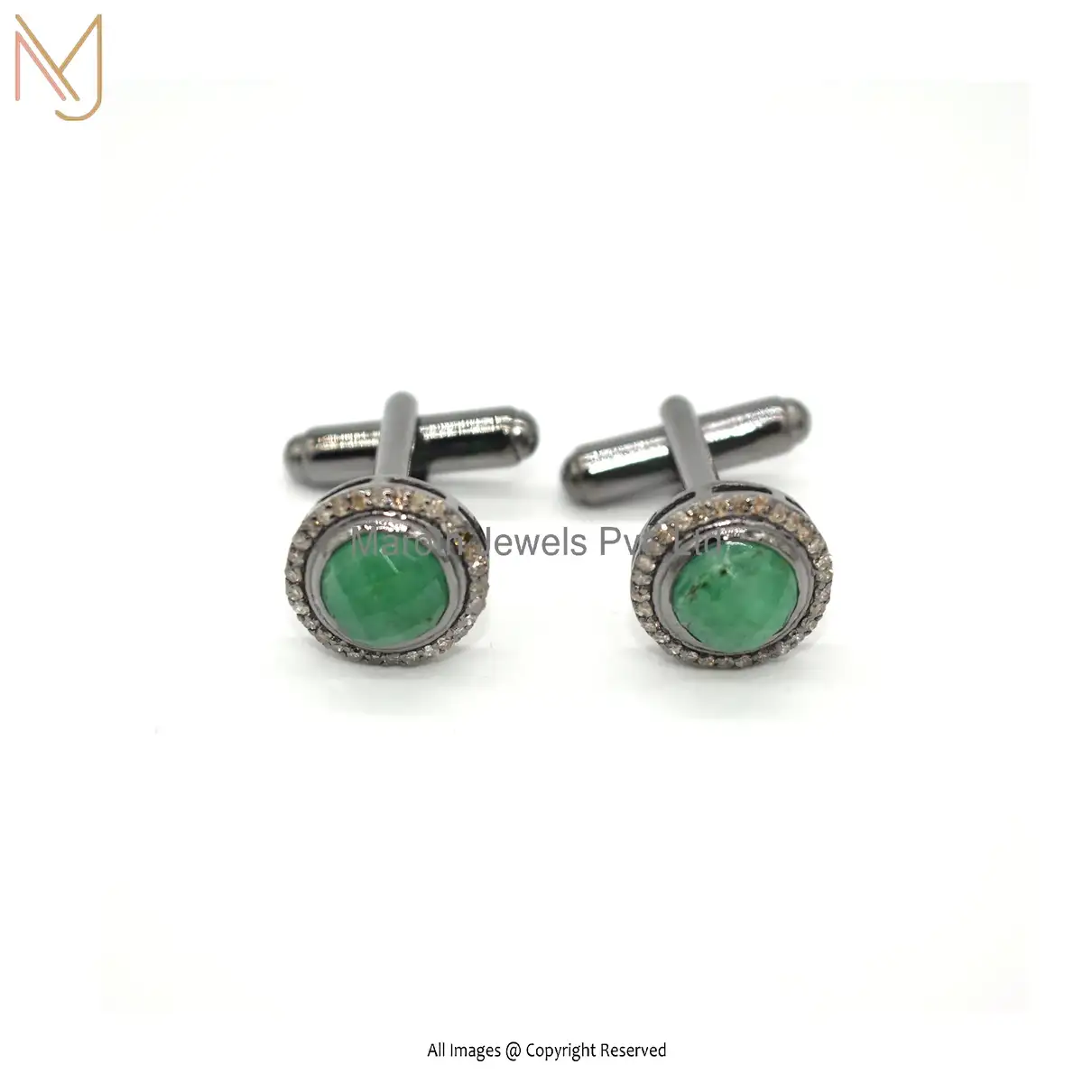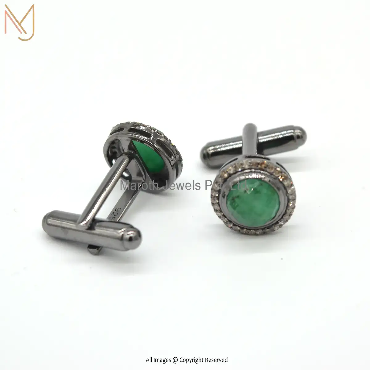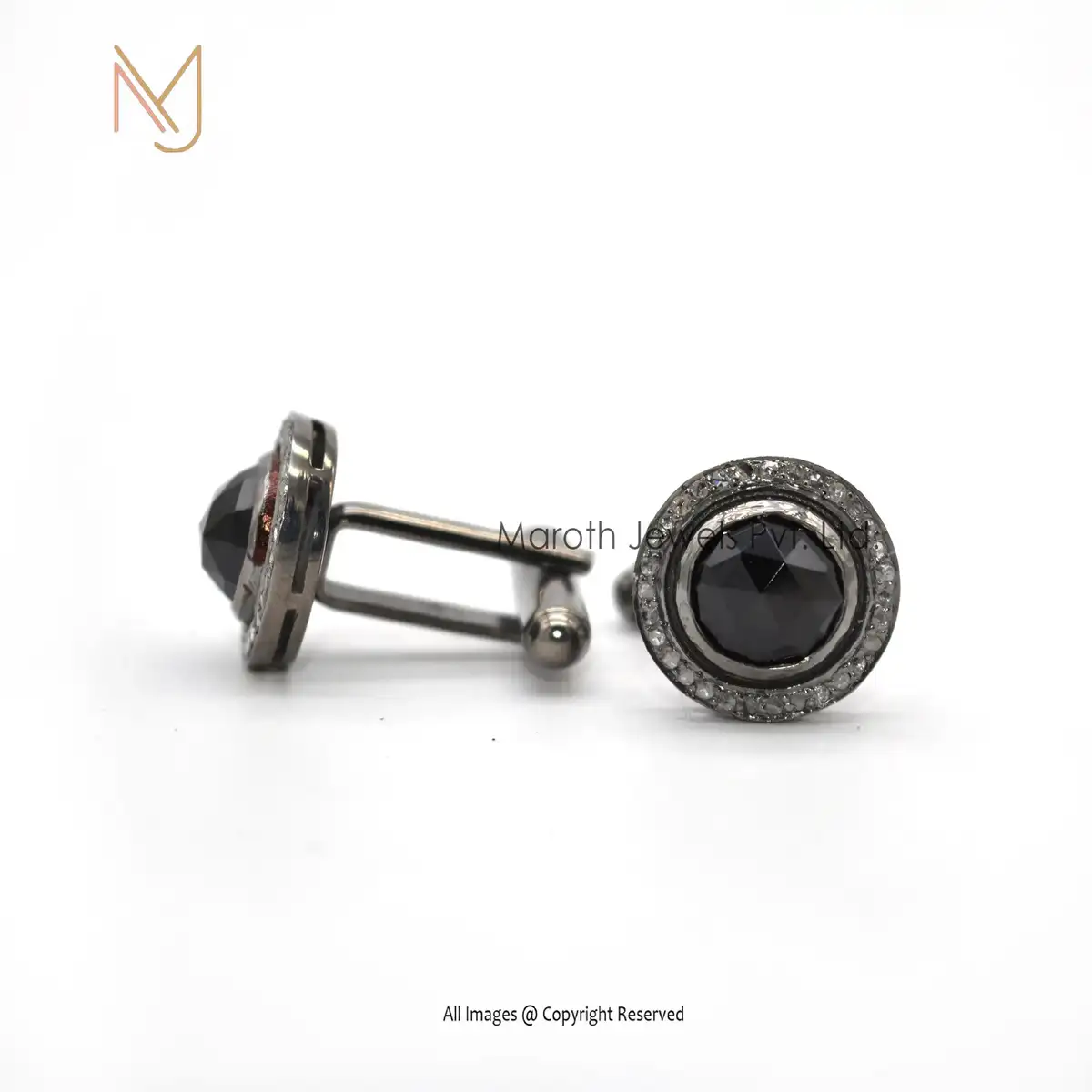 925 Silver Rhodium Plated Diamond, Black Spinel Gemstone Cufflink Jewelry Manufacturer