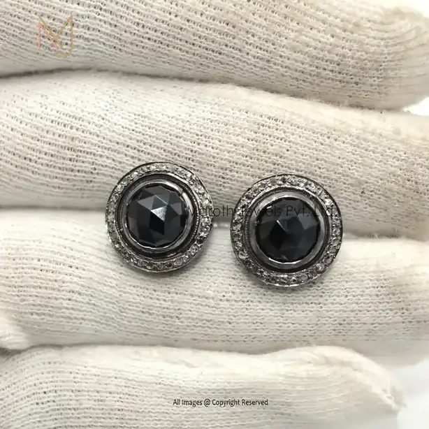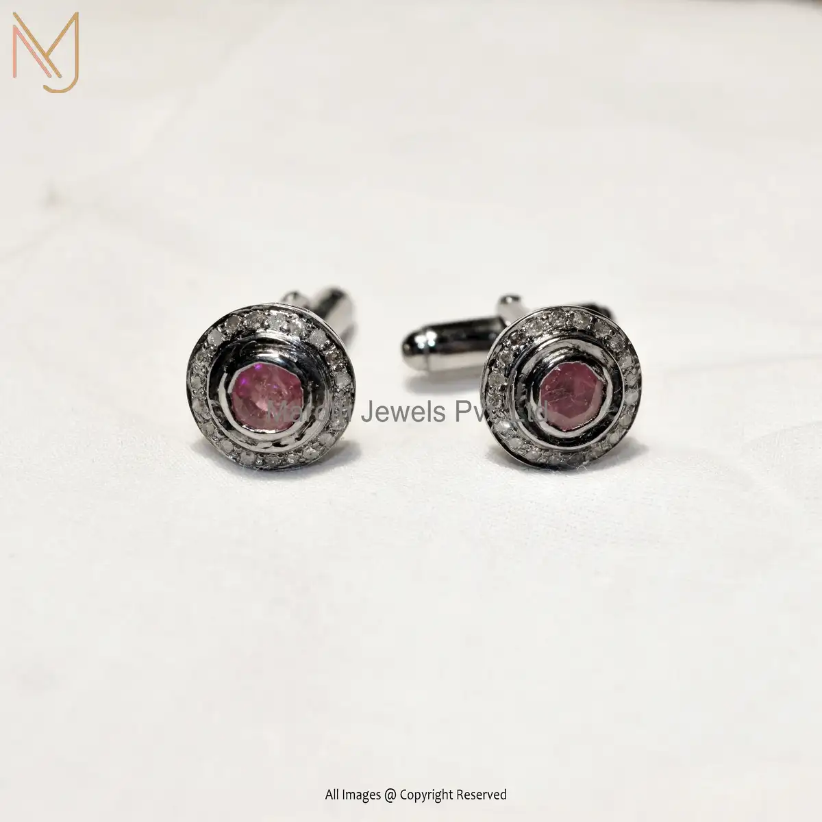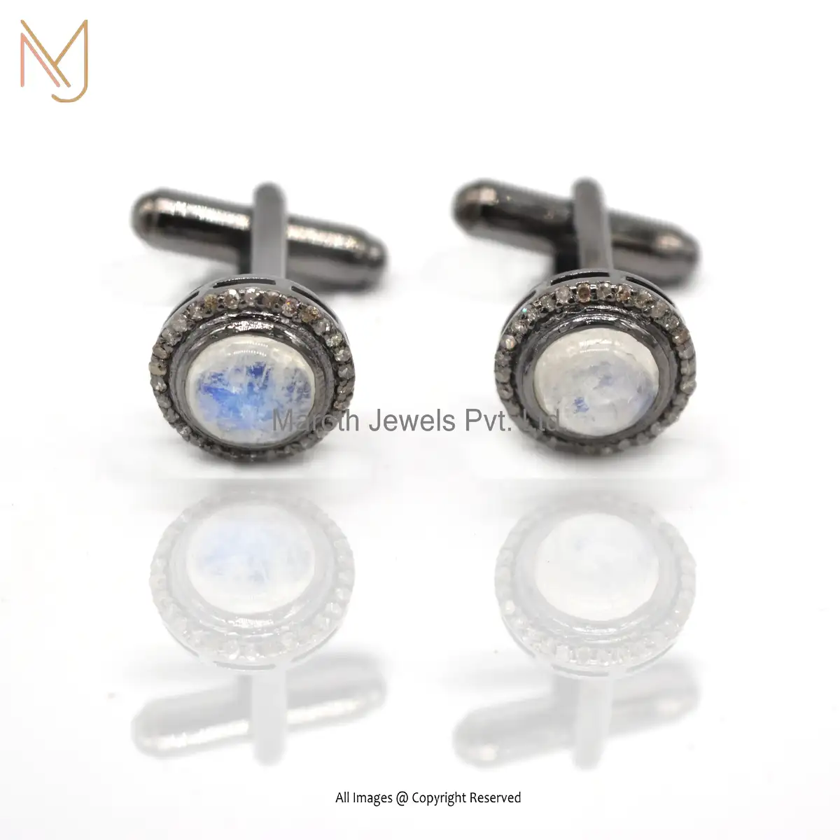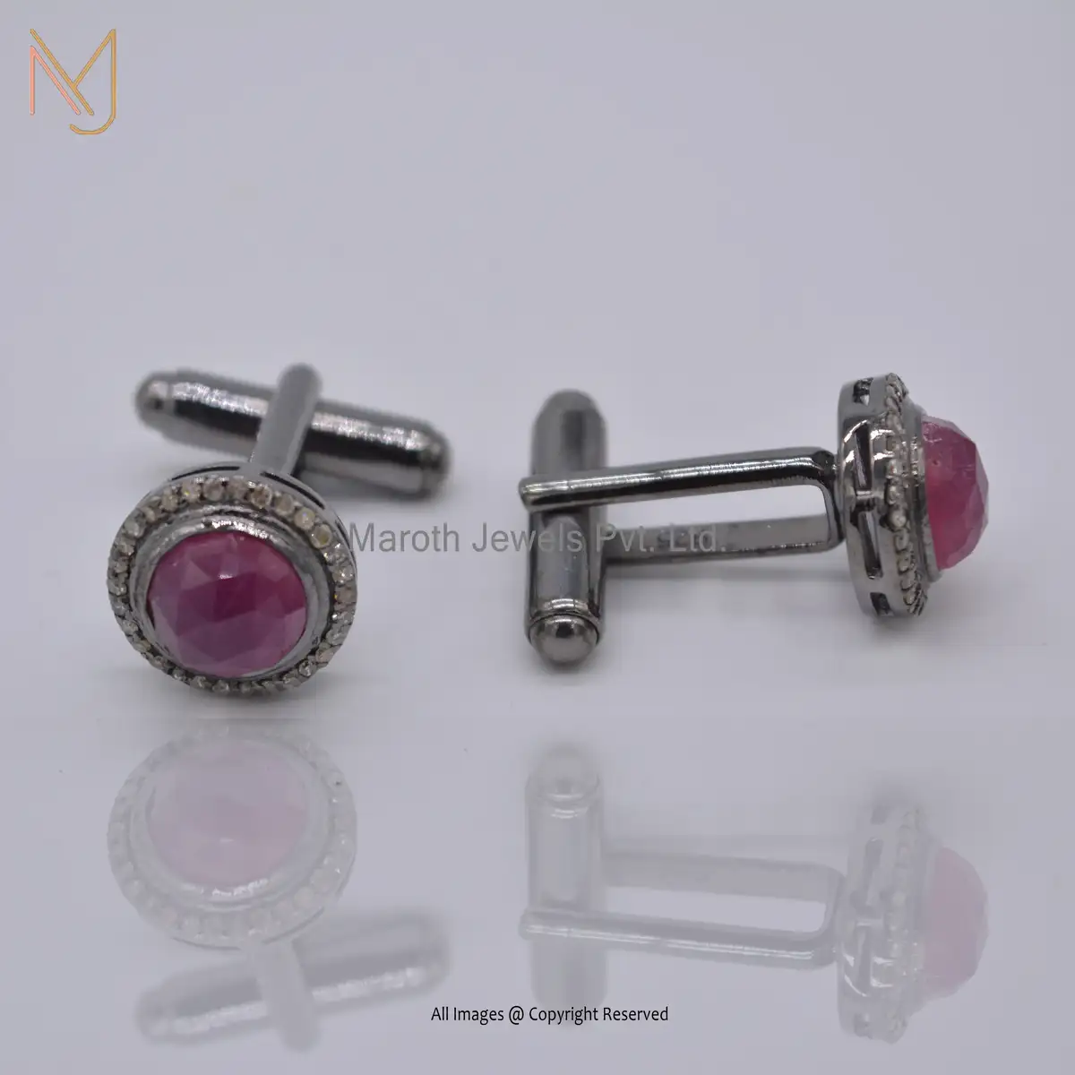 925 Silver Rhodium Plated Diamond, Black Spinel Gemstone Cufflink Jewelry Manufacturer