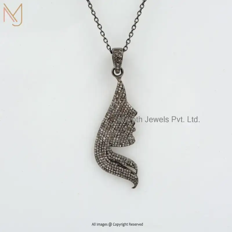 925 Silver Rhodium Plated Diamond Nouveau Lady Face Pendant Jewelry USA