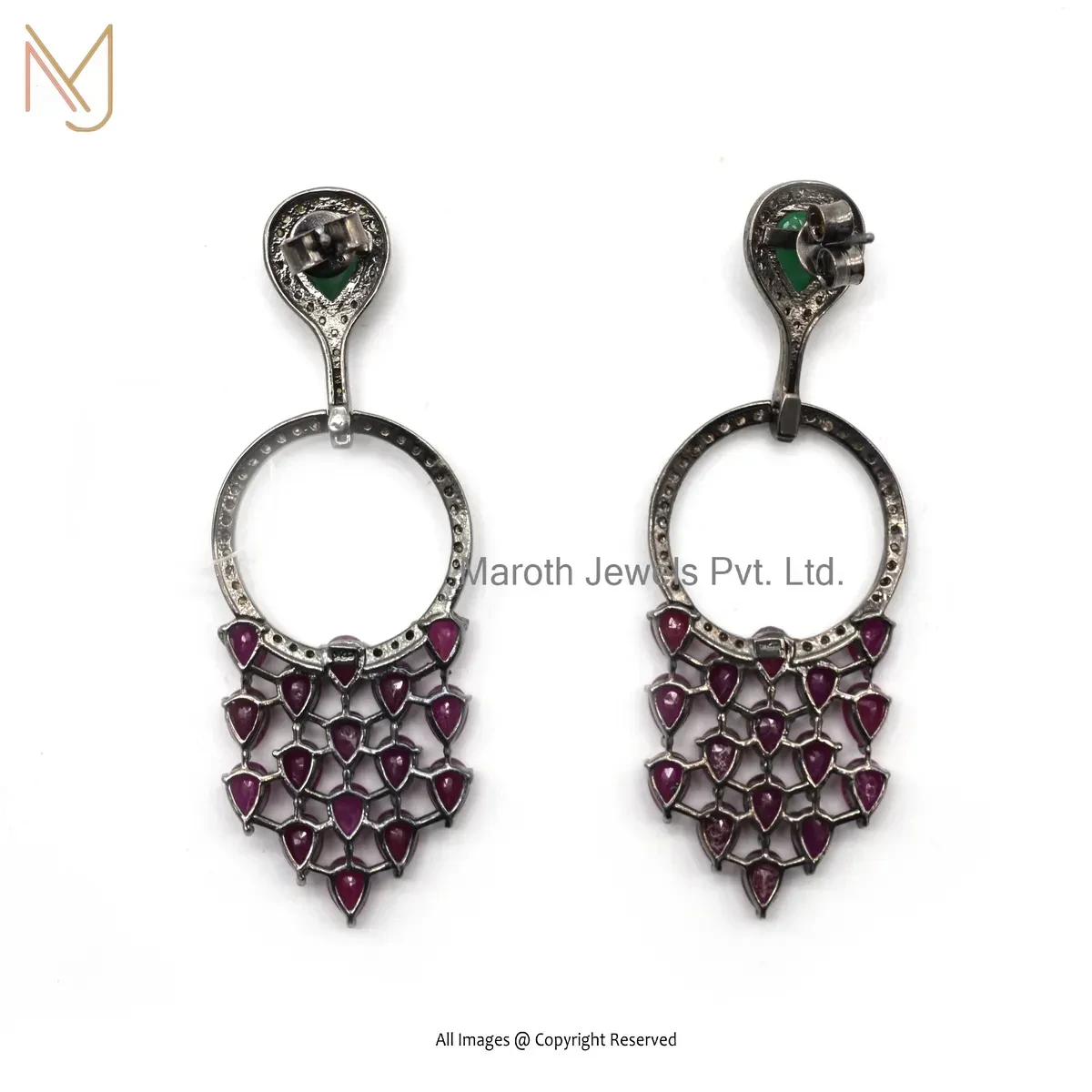 925 Silver Rhodium Plated Diamond Ruby And Emerald Gemstone Earring Jewelry Supplier