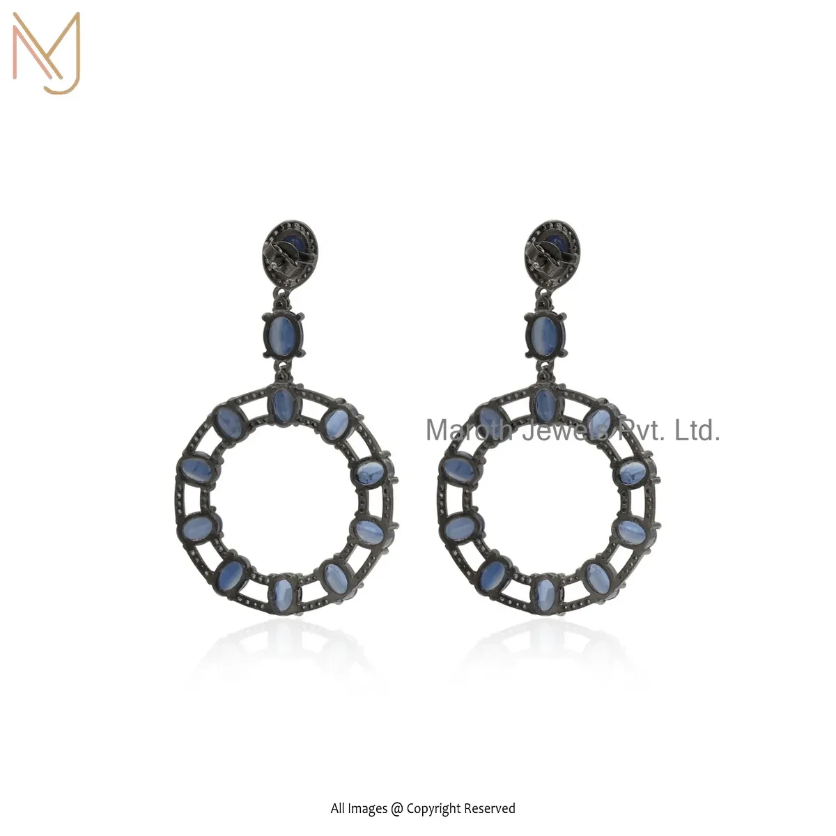 925 Silver Rhodium Plated Dimaond And Kyanite Gemstone Drop Earring Custom Jewelry