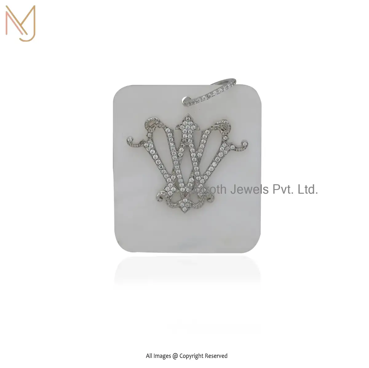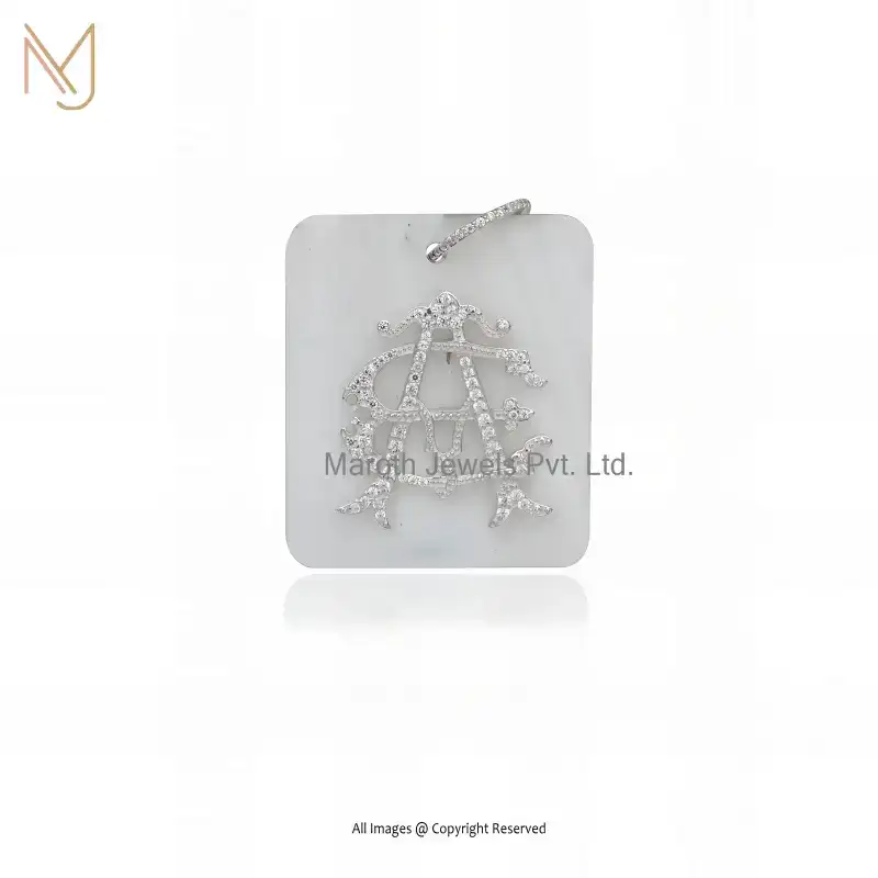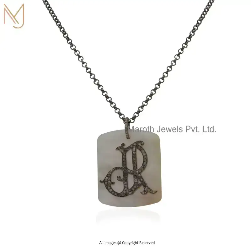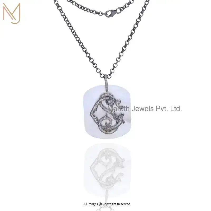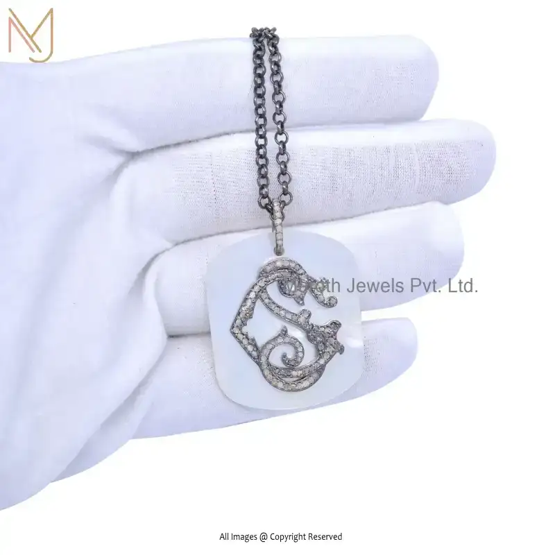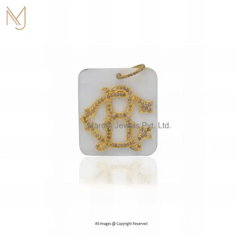 925 Silver Rhodium Plated Mother OF Pearl Cubic Zircon Monogram Pendant Custom Jewelry