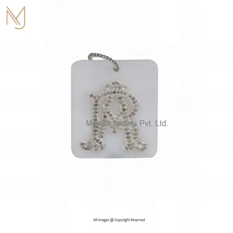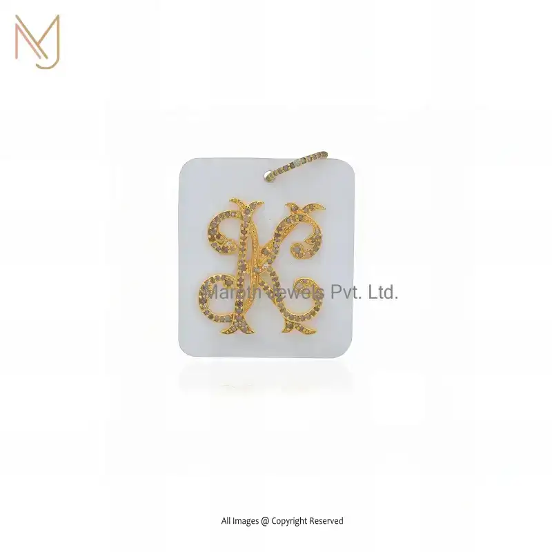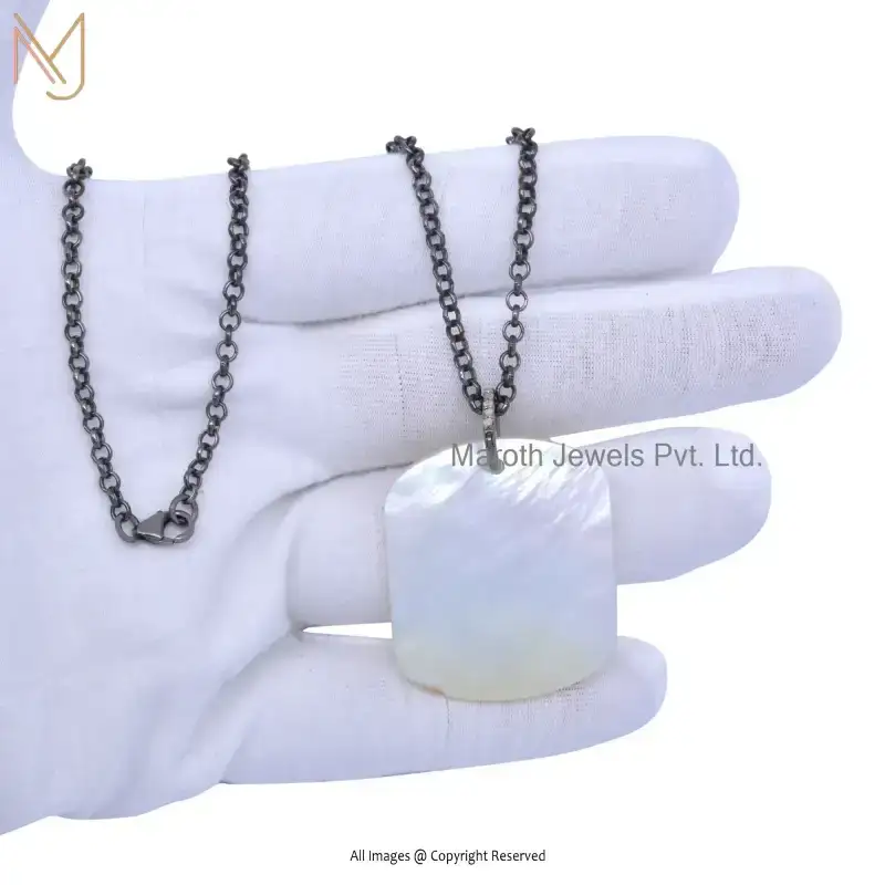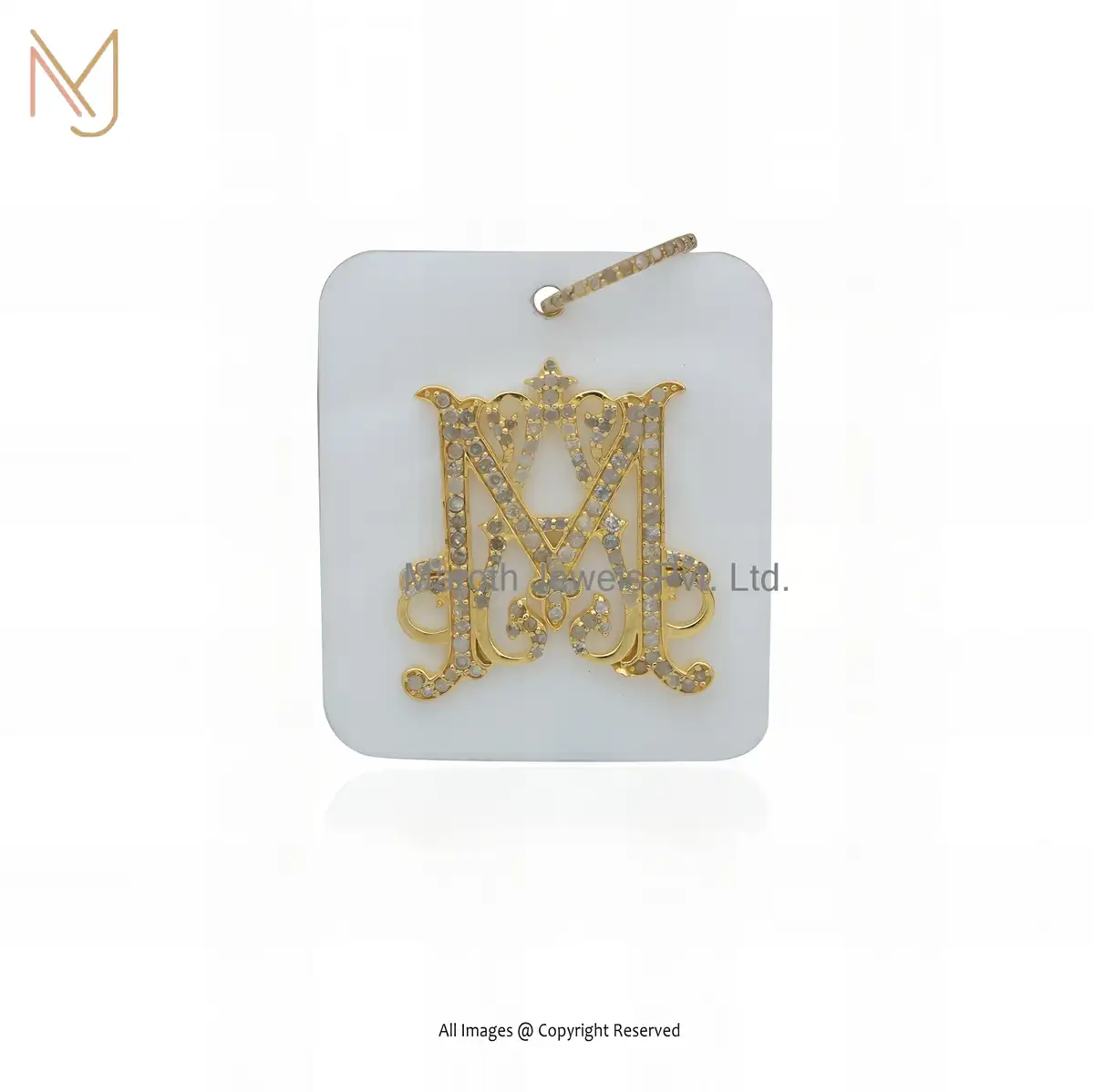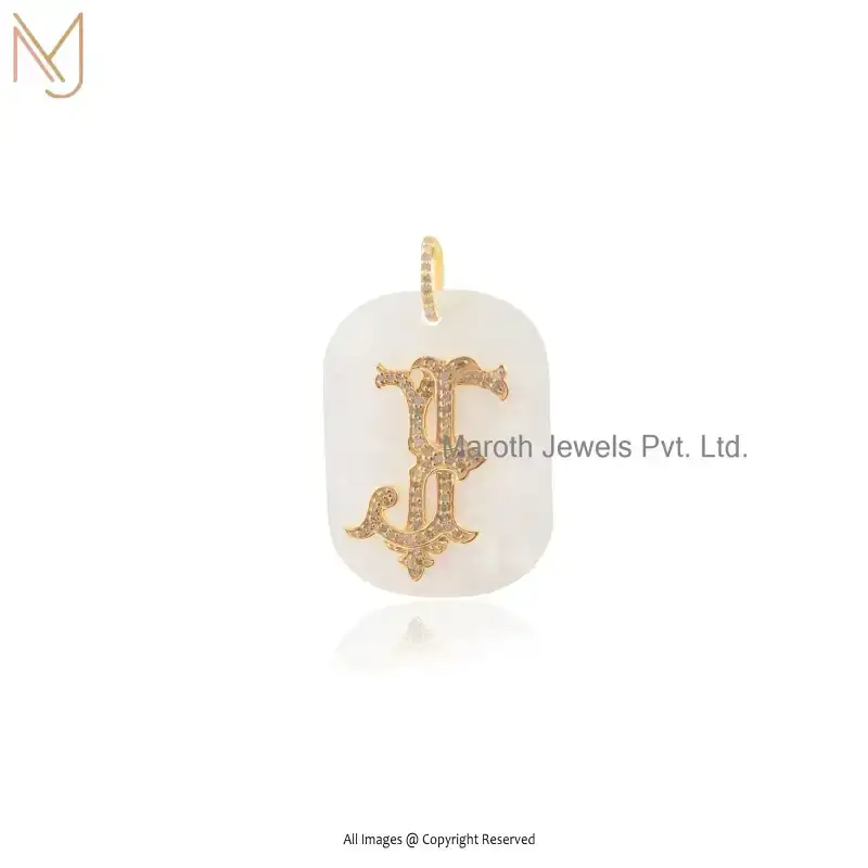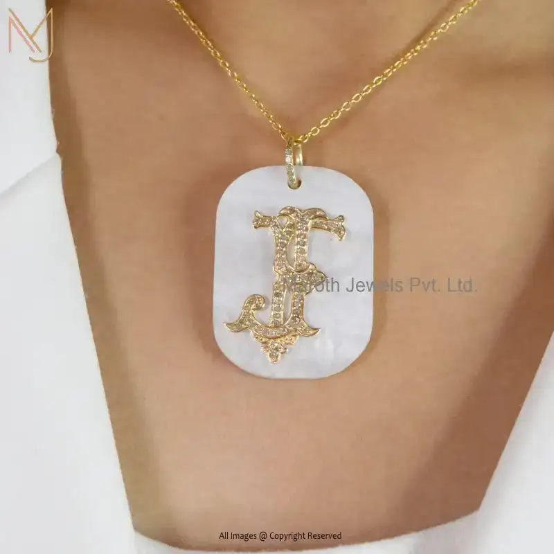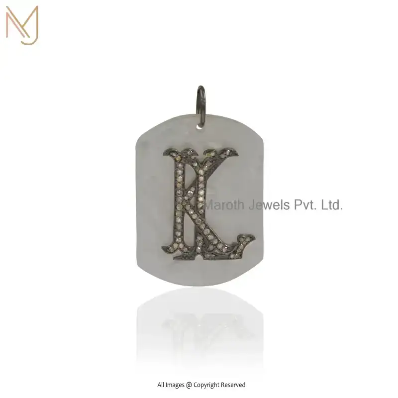 925 Silver Rhodium Plated Mother OF Pearl Cubic Zircon Monogram Pendant Custom Jewelry
