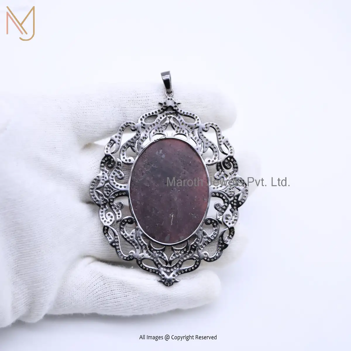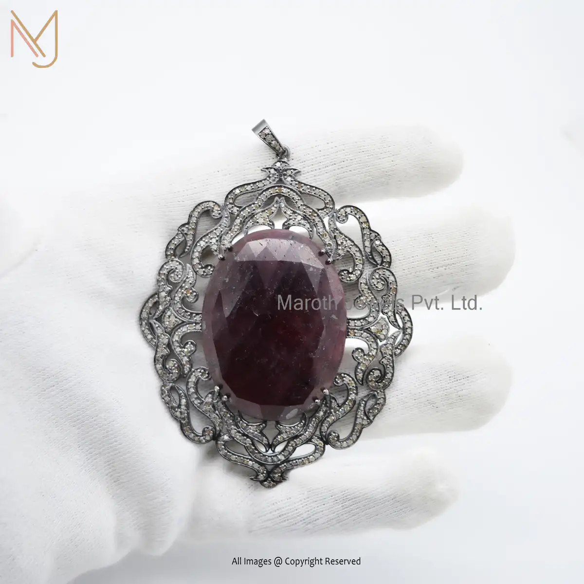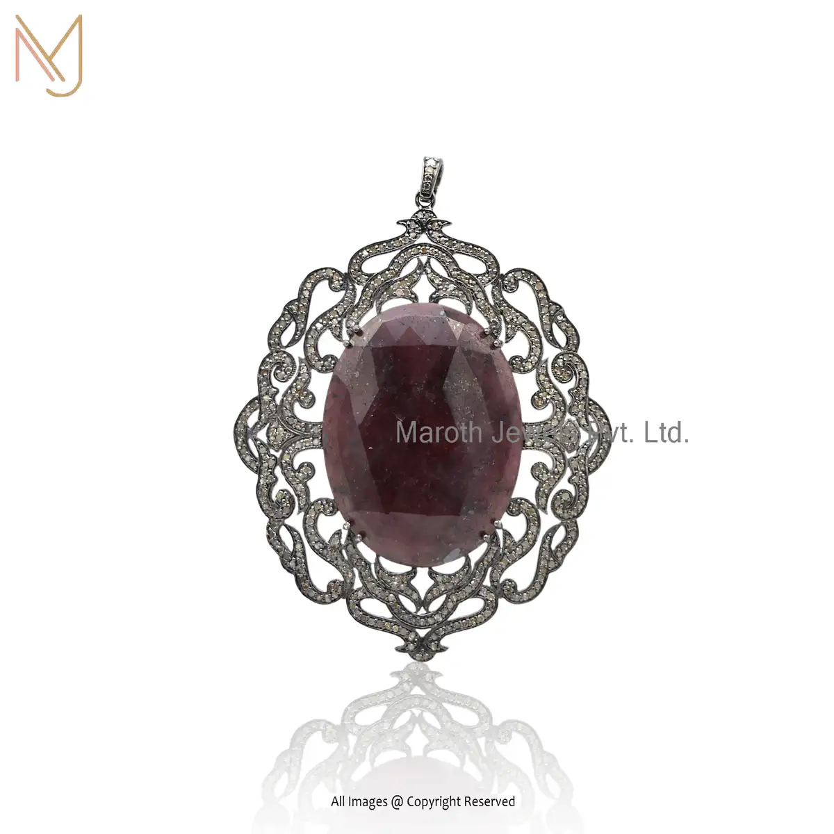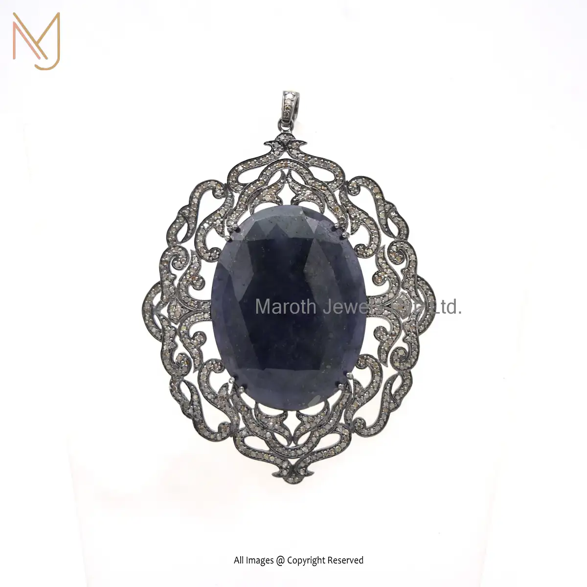 925 Silver Rhodium Plated Pave Diamond And Blue Sapphire Gemstone Designer Pendant Jewelry Manufacturer