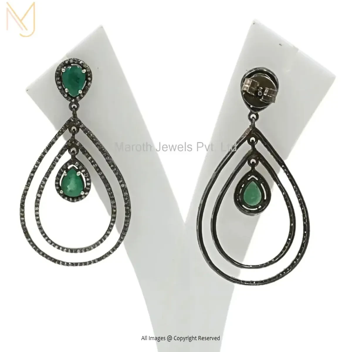 925 Silver Rhodium Plated Pave Diamond And Emerald Drop Earring Manufacturer