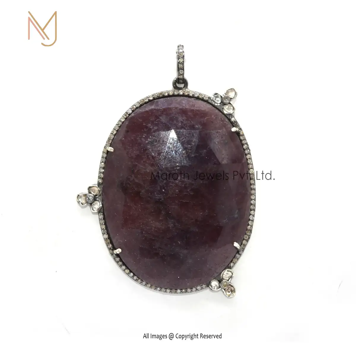 925 Silver Rhodium Plated Pave Diamond And Ruby Gemstone Pendant Jewelry USA