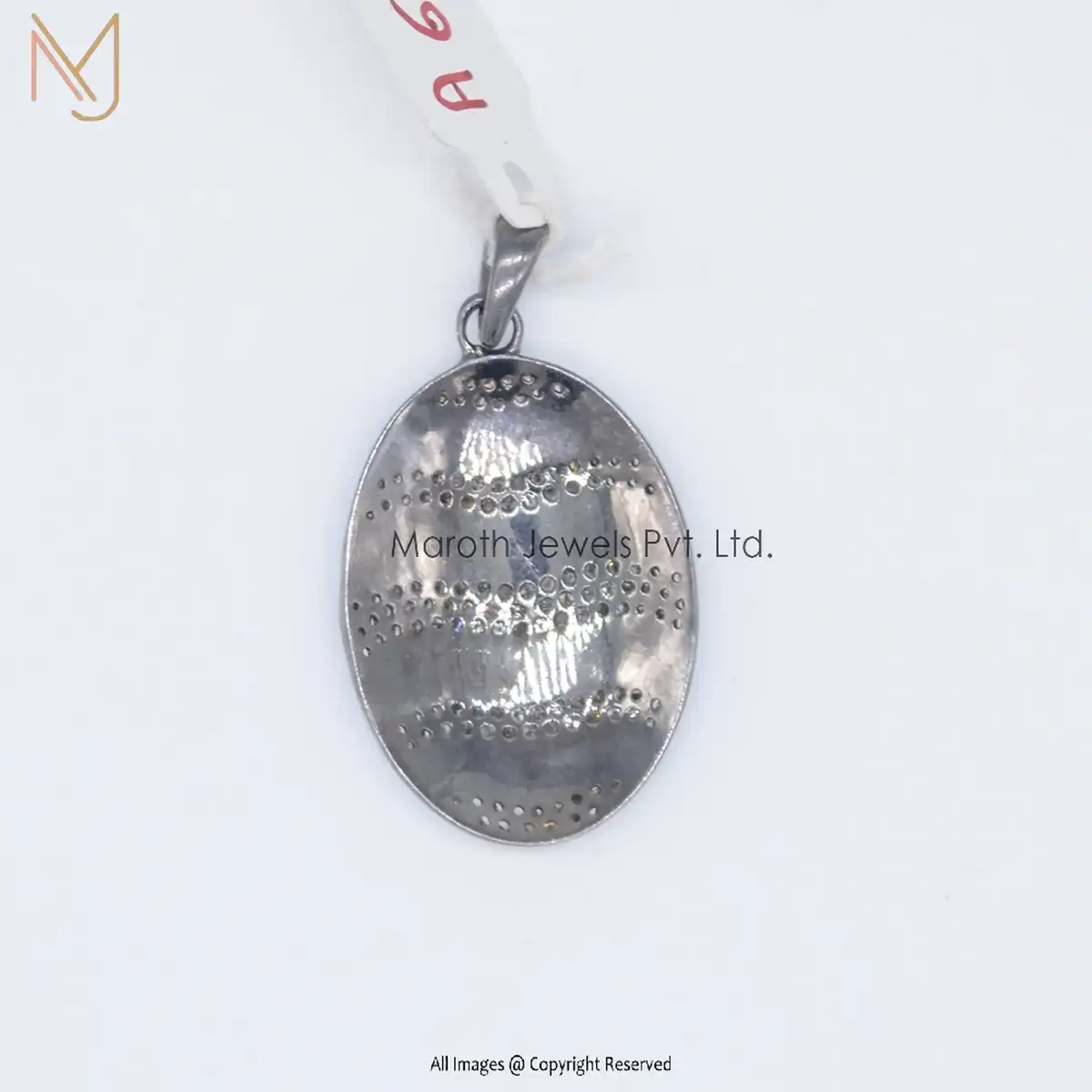 925 Silver Rhodium Plated Pave Diamond And Turquoise Enamel Pendant Custom Jewelry