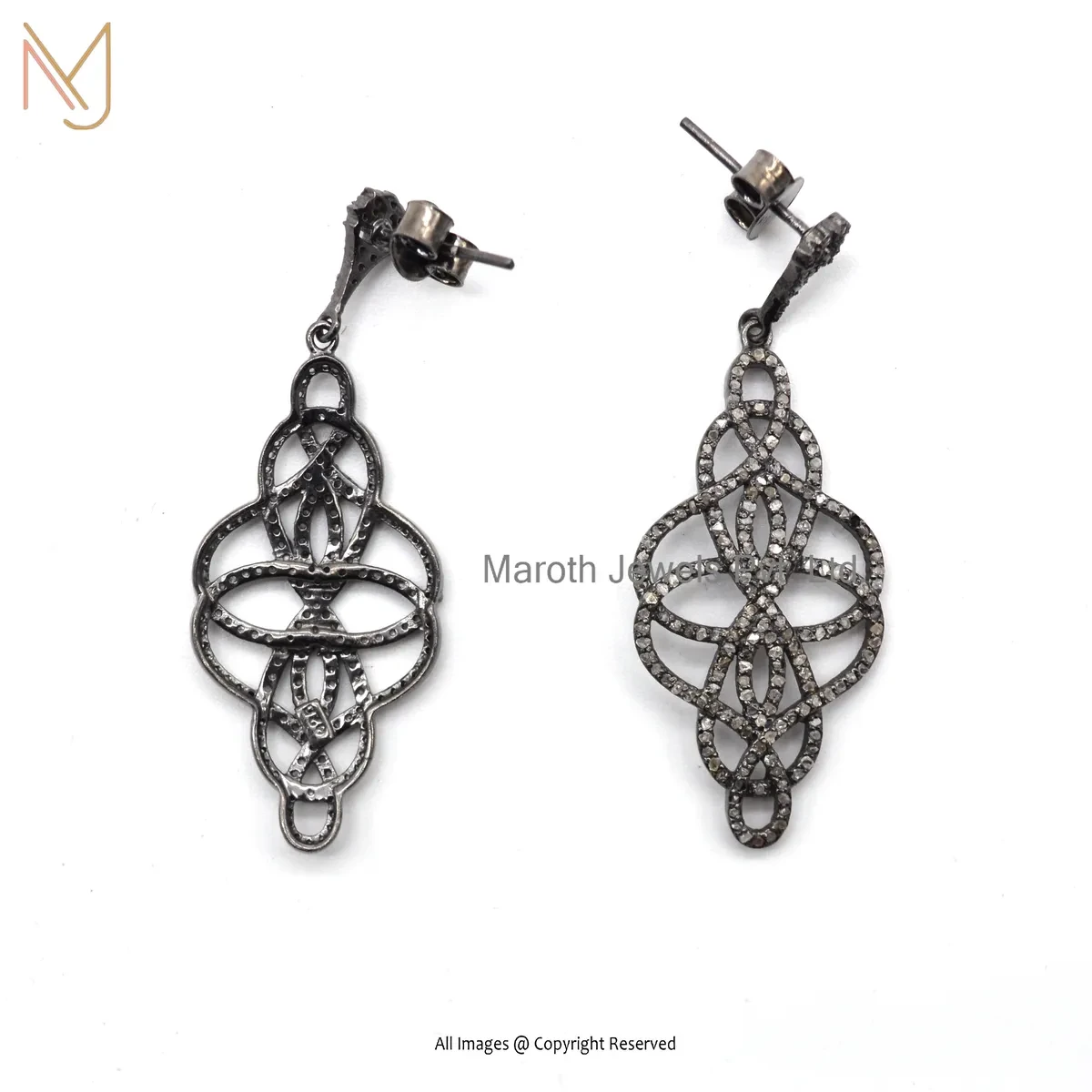 925 Silver Rhodium Plated Pave Diamond Designer Drop Earring Jewelry Supplier