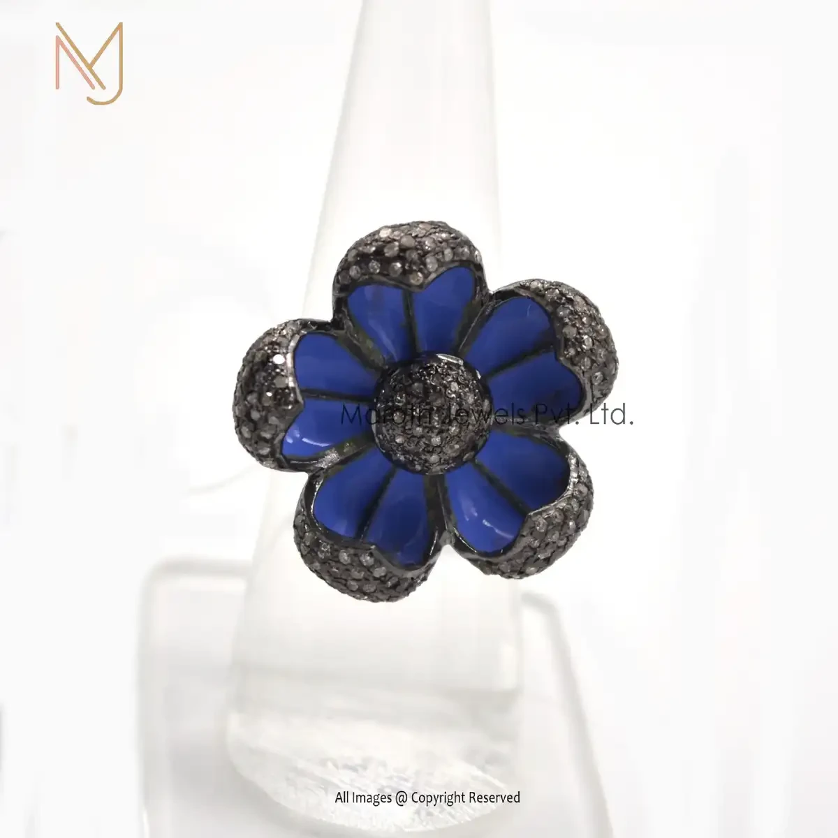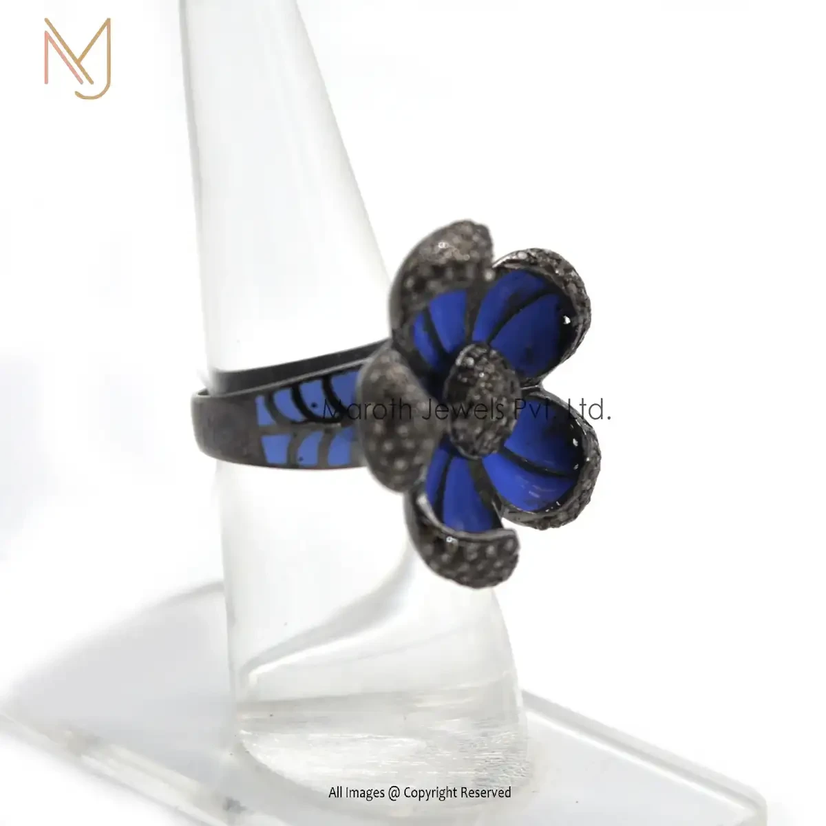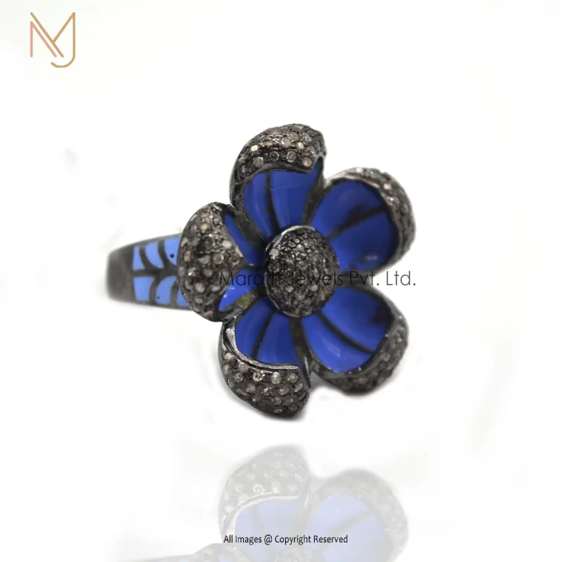 925 Silver Rhodium Plated Pave Diamond Enamel Flower Ring Manufacturer