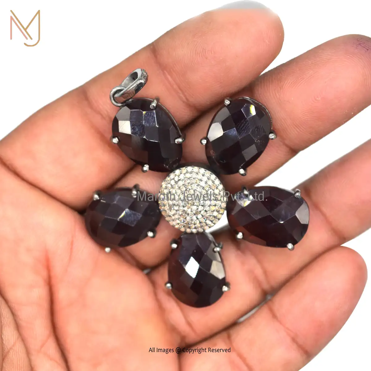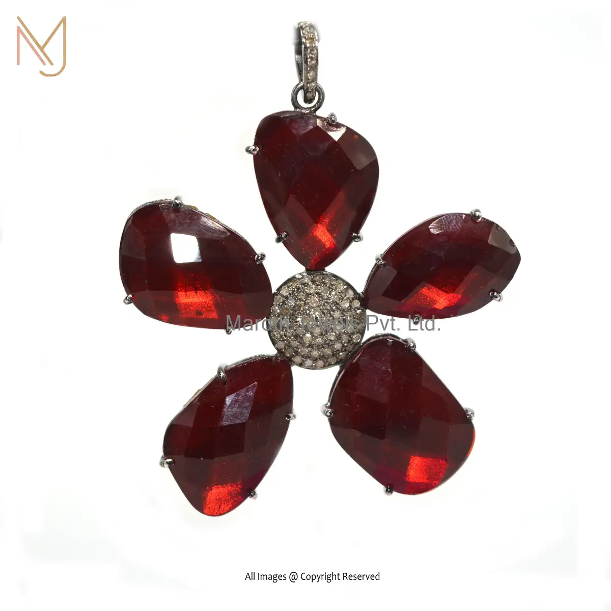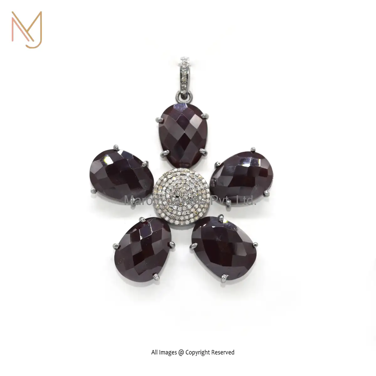 925 Silver Rhodium Plated Pave Diamond & Garnet Gemstone Jewelry Pendant Jewelry USA