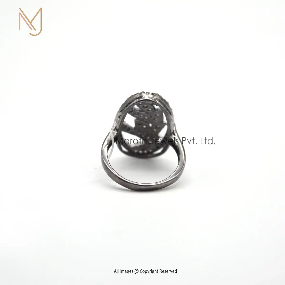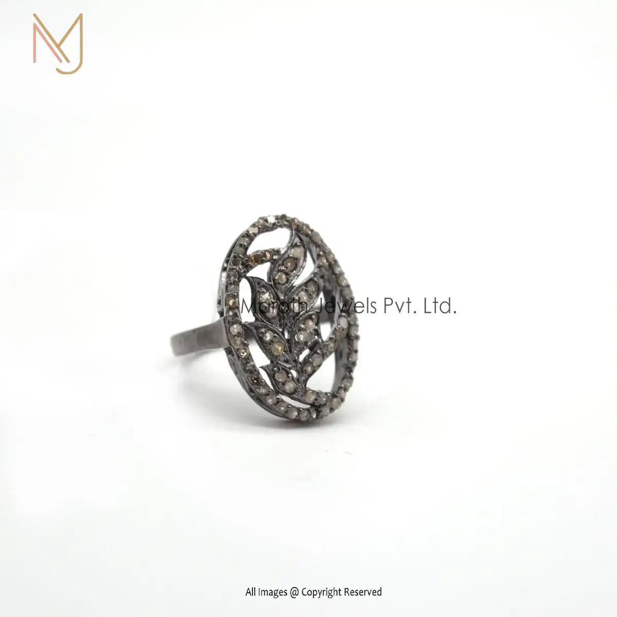 925 Silver Rhodium Plated Pave Diamond Oval Leaf Design Ring Manufacturer