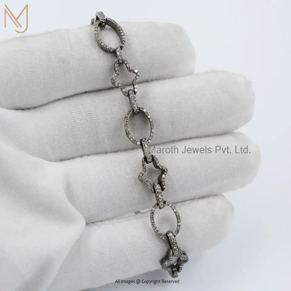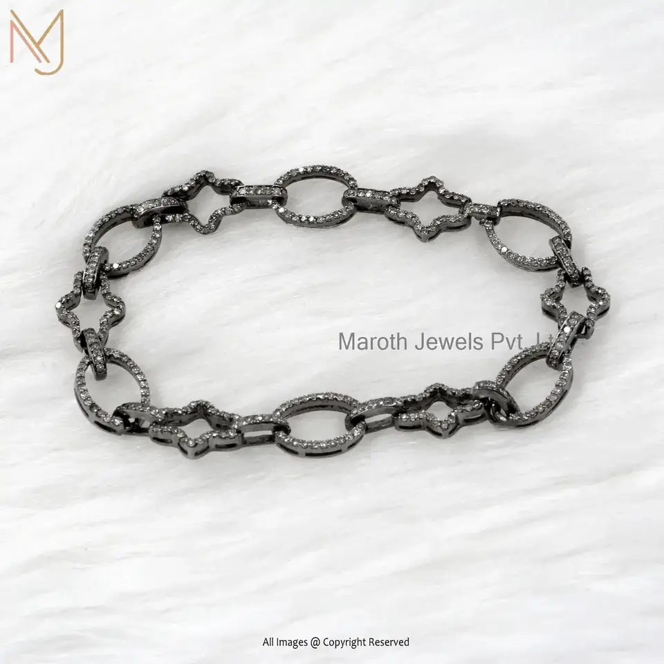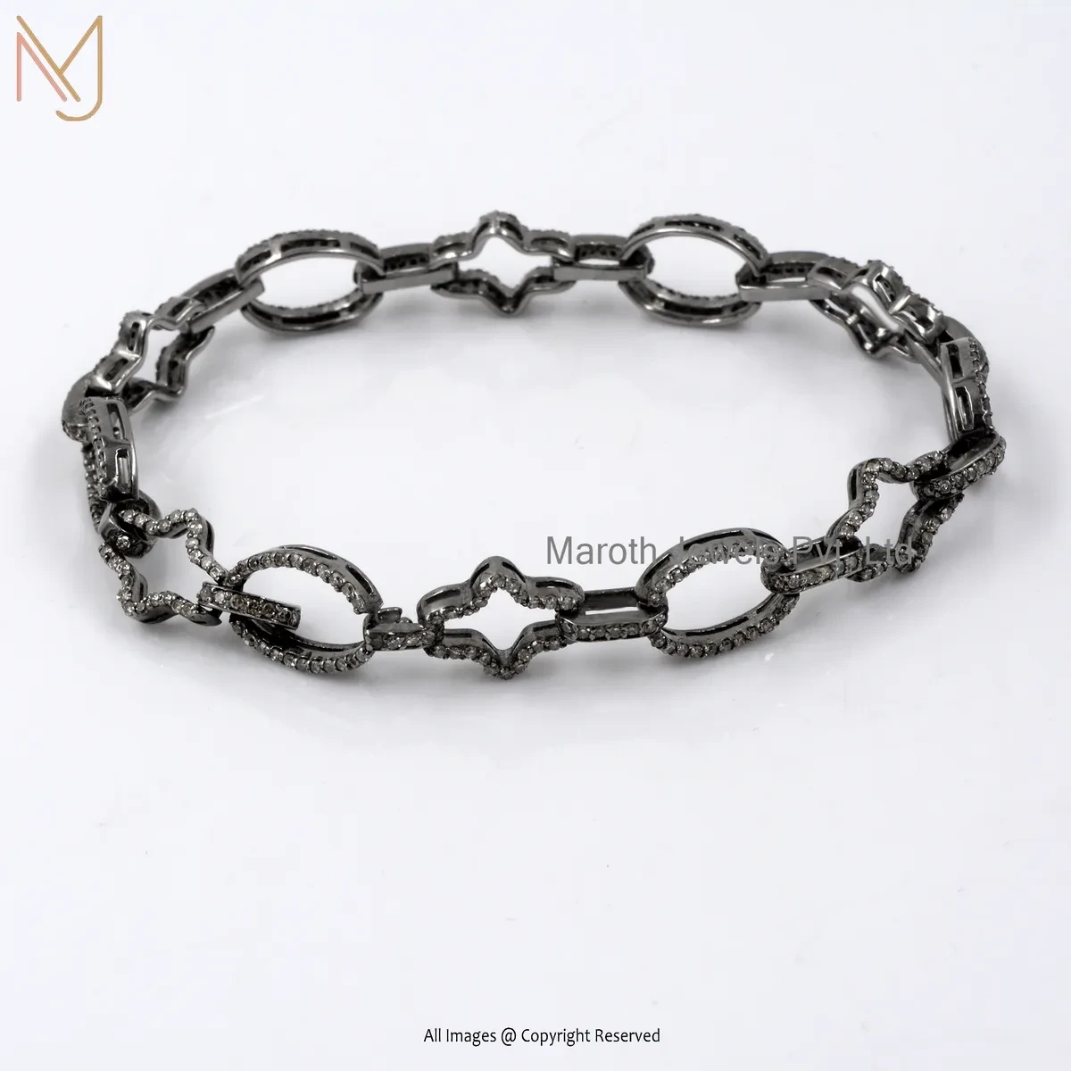 925 Silver Rhodium Plated Pave Diamond Oval & Star Bracelet Jewelry Supplier