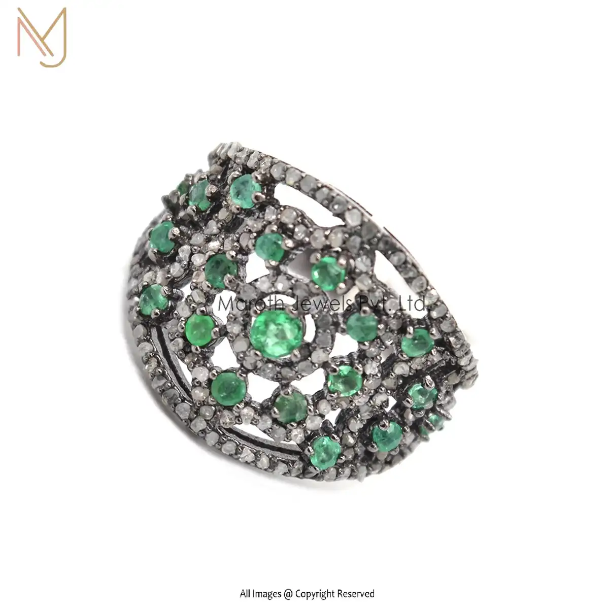 925 Silver Rhodium Plated Pave Diamond Ring Emerald Gemstone Ring Jewelry Manufacturer