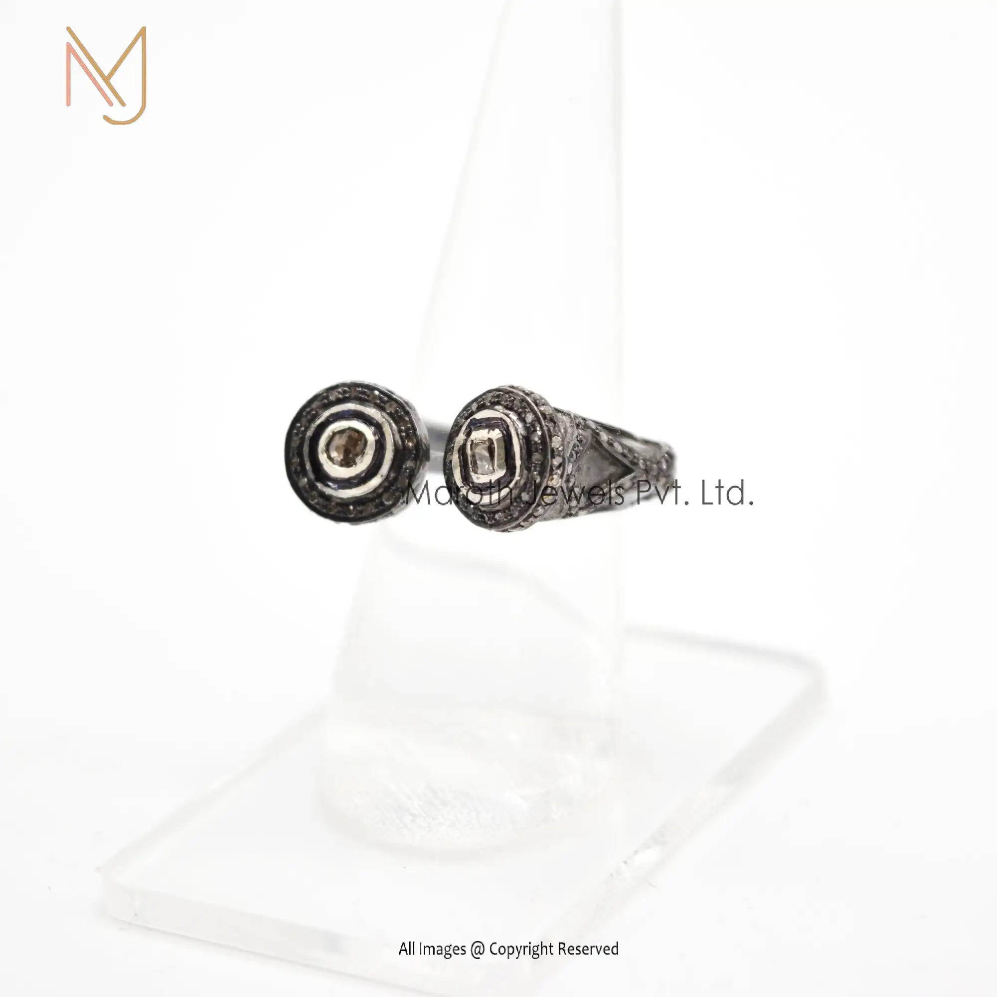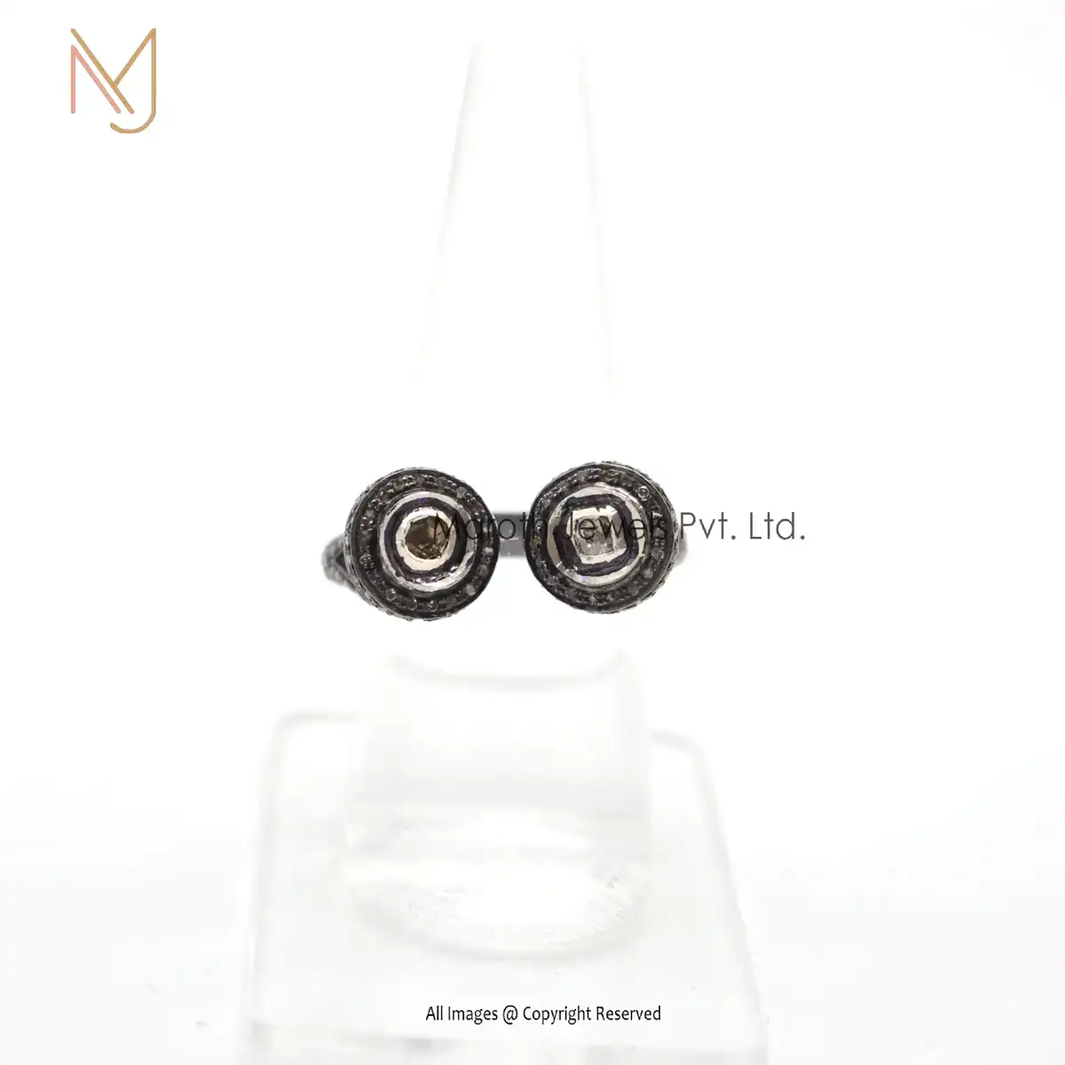 925 Silver Rhodium Plated Pave Diamond & Rose Cut Diamond Ring Jewelry Manufacturer