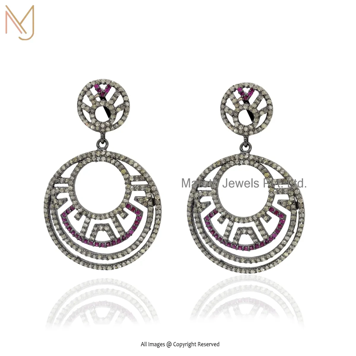 925 Silver Rhodium Plated Pave Diamond Ruby Gemstone Drop Earring Manufacturer