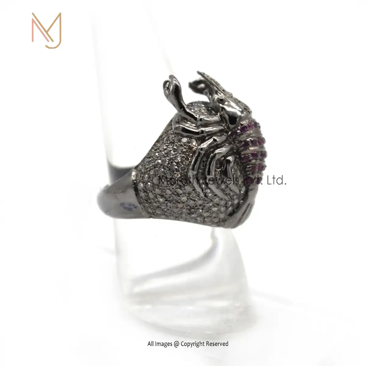 925 Silver Rhodium Plated Pave Diamond Ruby Gemstone Scropian Ring Manufacturer