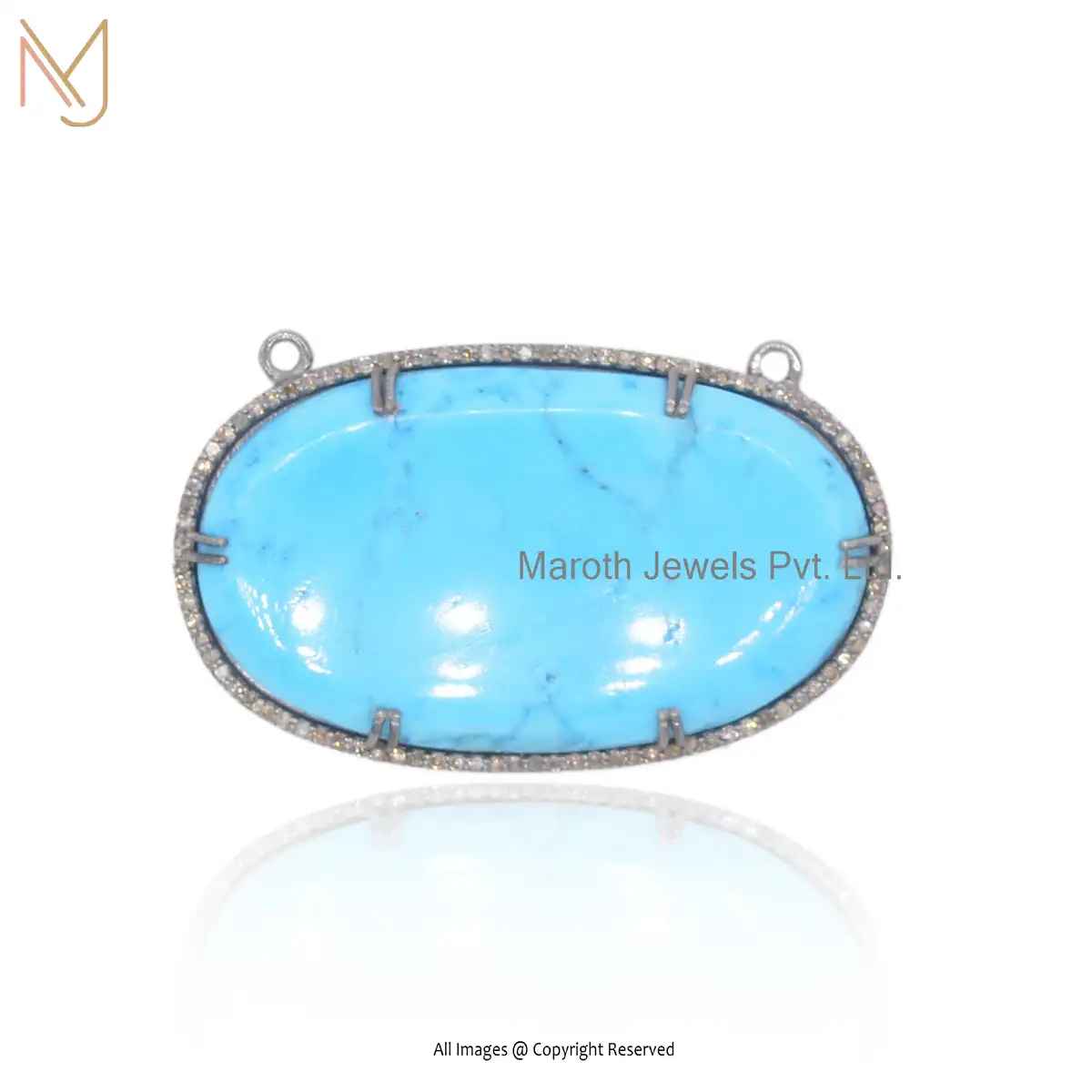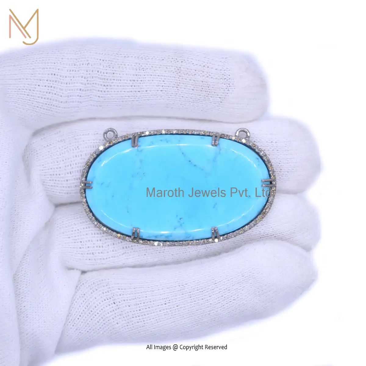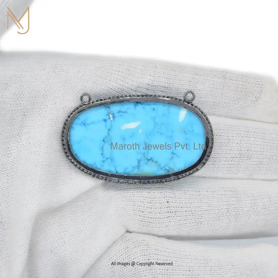 925 Silver Rhodium Plated Pave Diamond Turquoise Gemstone Jewelry Pendant Custom Jewelry