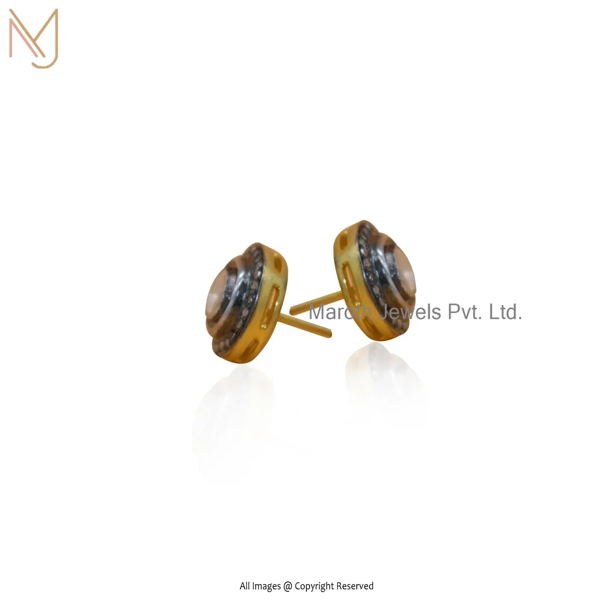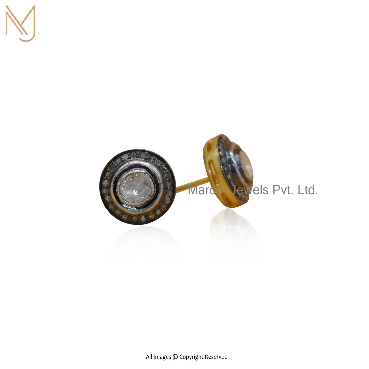 925 Silver Rhodium Plated Polki Rose Cut Diamond Stud Earring Jewelry Supplier