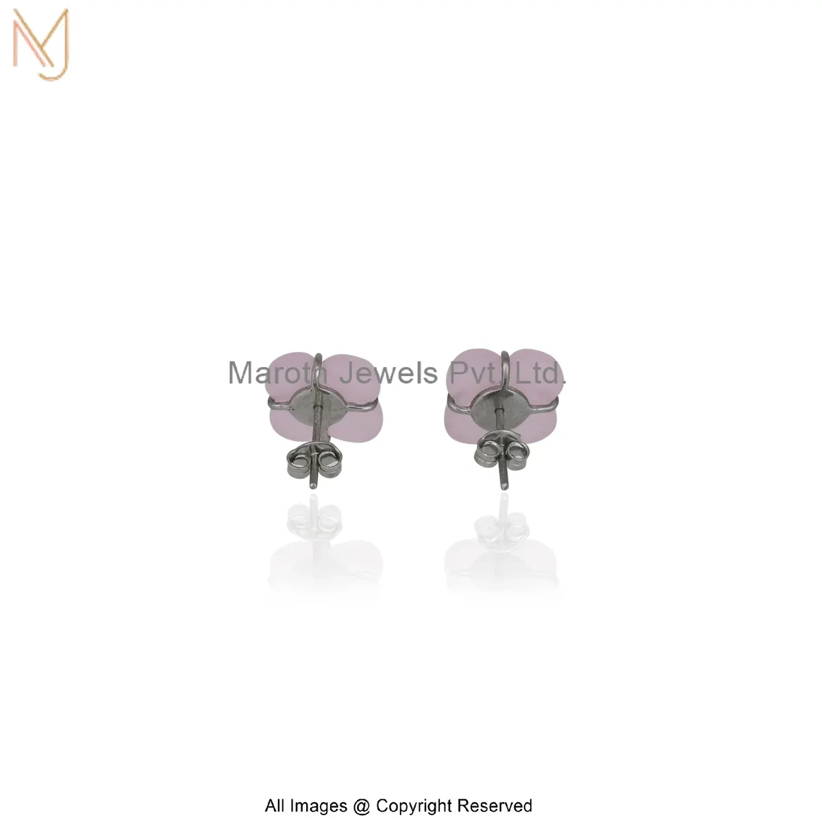 925 Silver Rhodium Plated Rose Quartz Cubic Zircon Lavender Four-Petal Crystal Stud Earrings USA