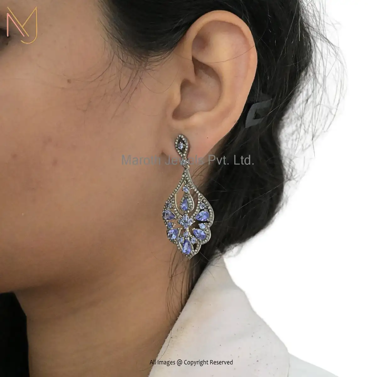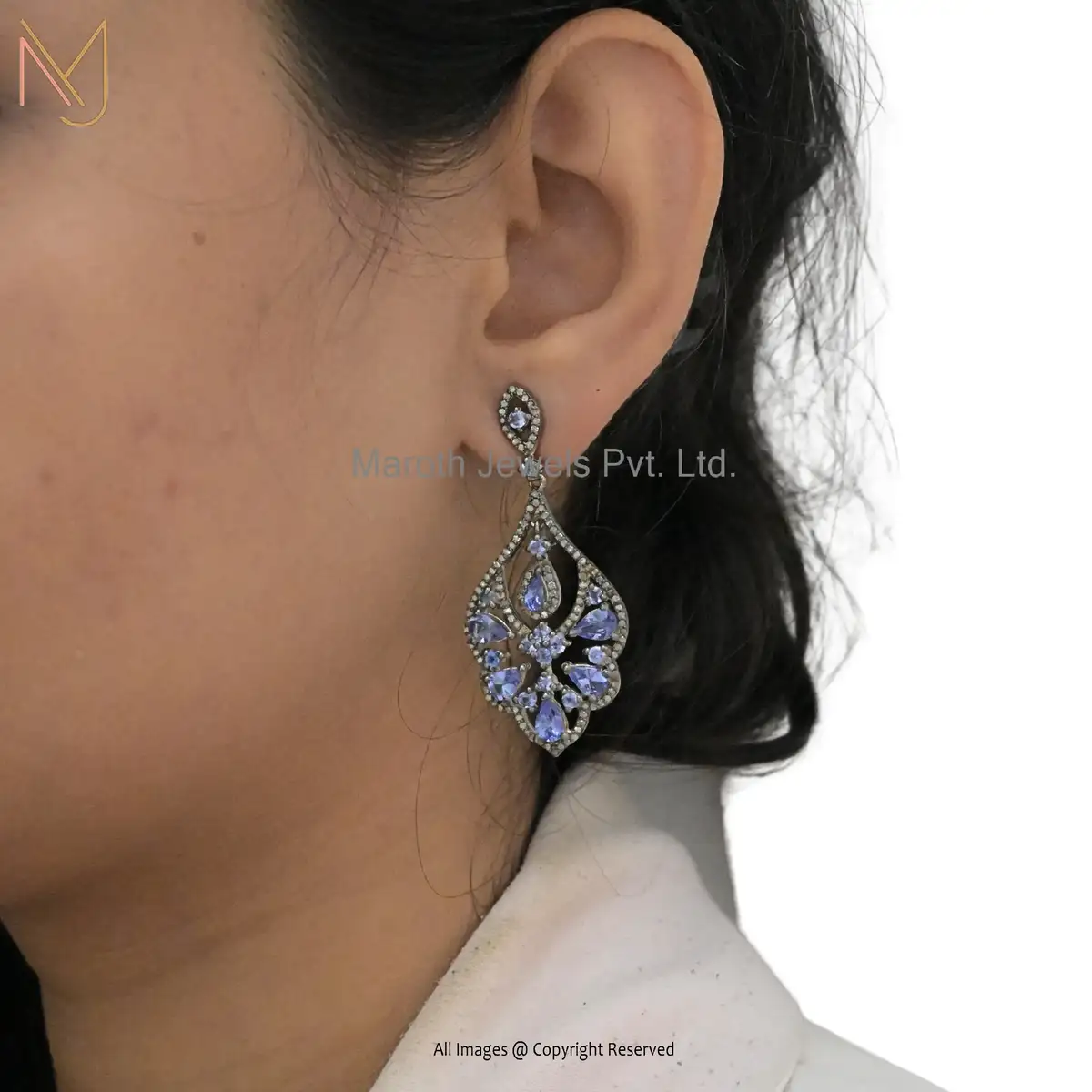 925 Silver Rhodium Tanzanite Diamond Beautiful Designer Earring Jewelry Supplier