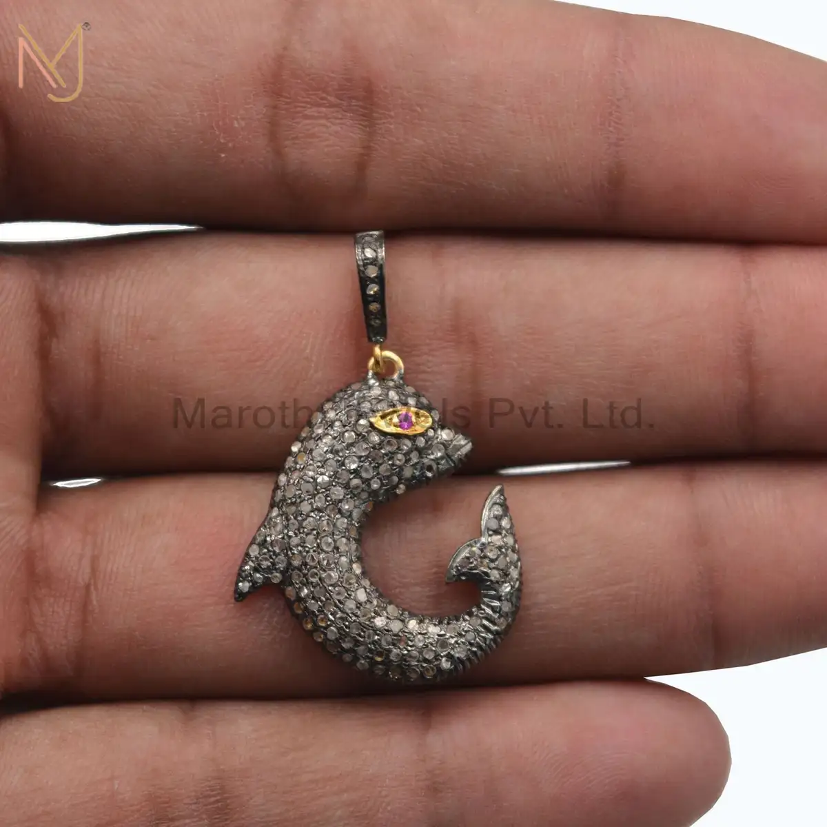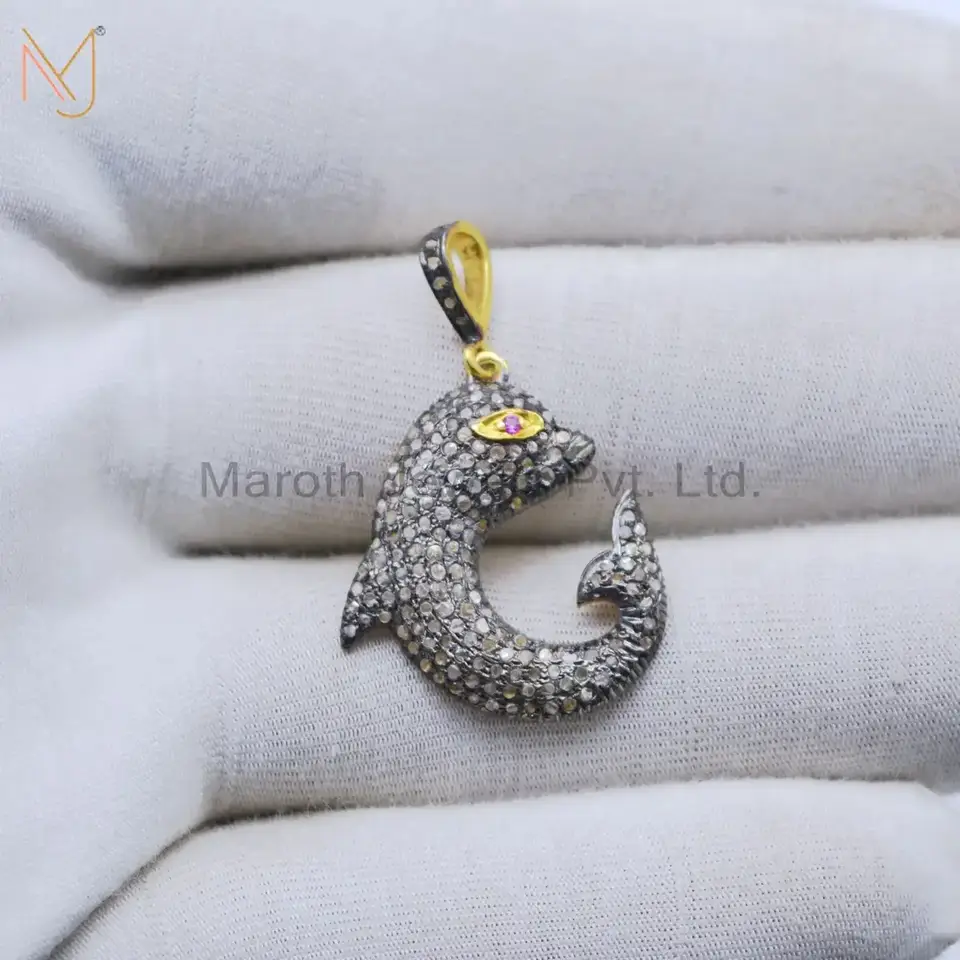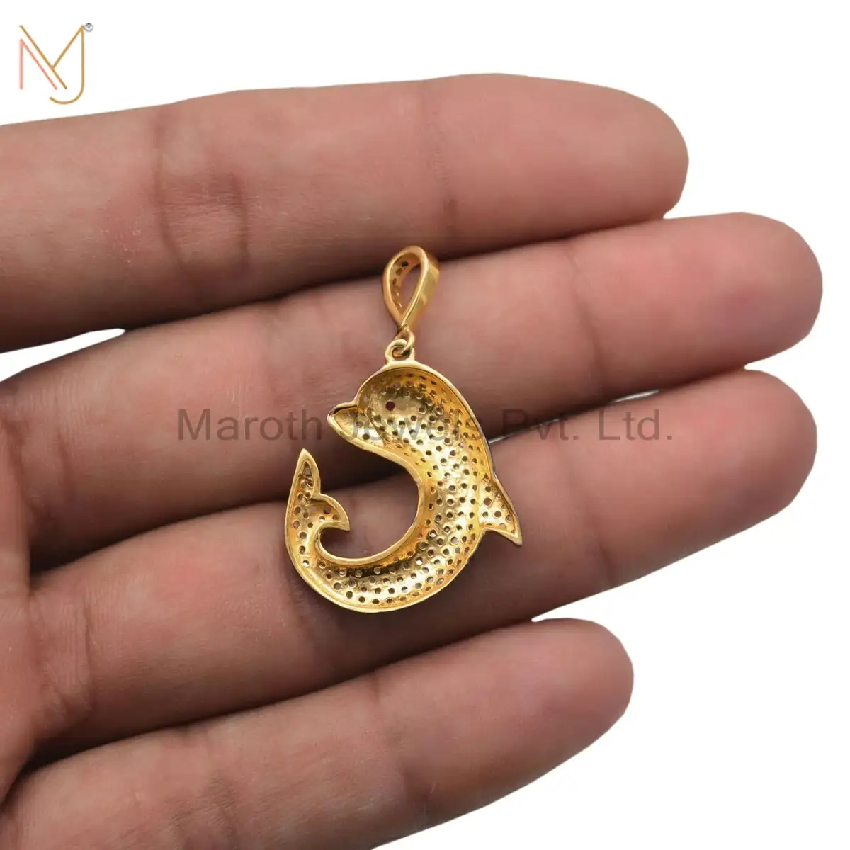 925 Silver Rhodium Yellow Gold & Emerald And Pink Sapphire Pendand Jewelry USA